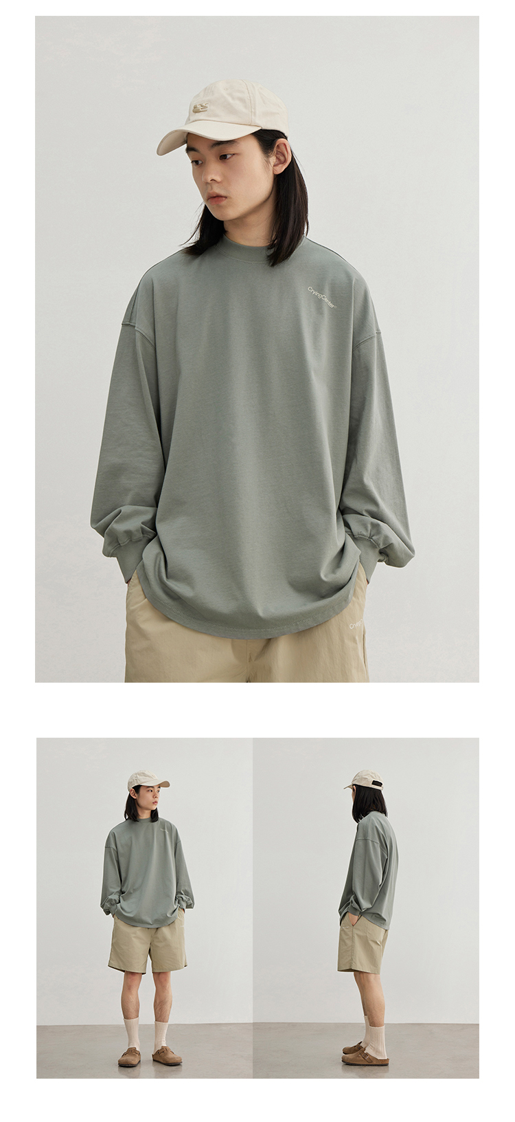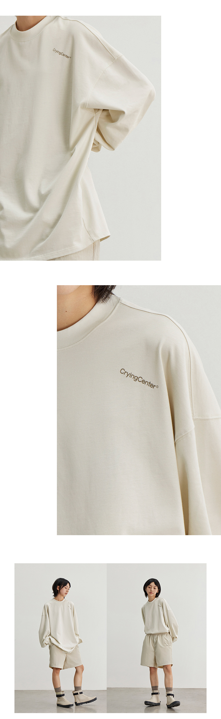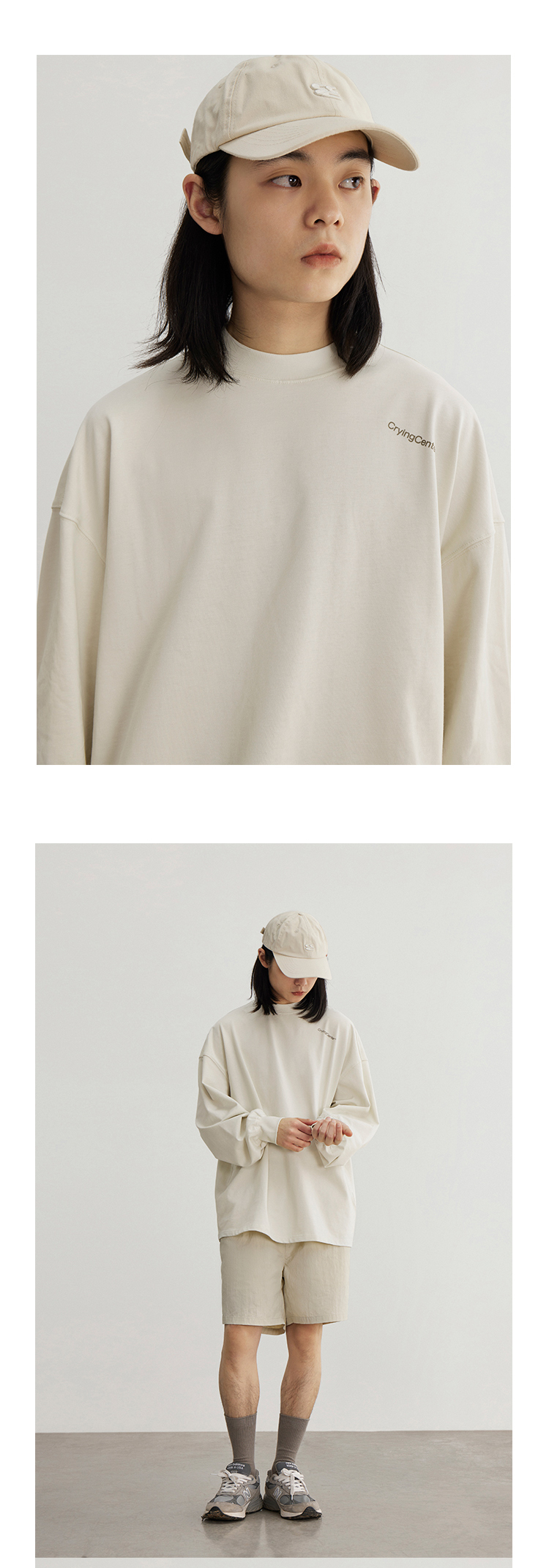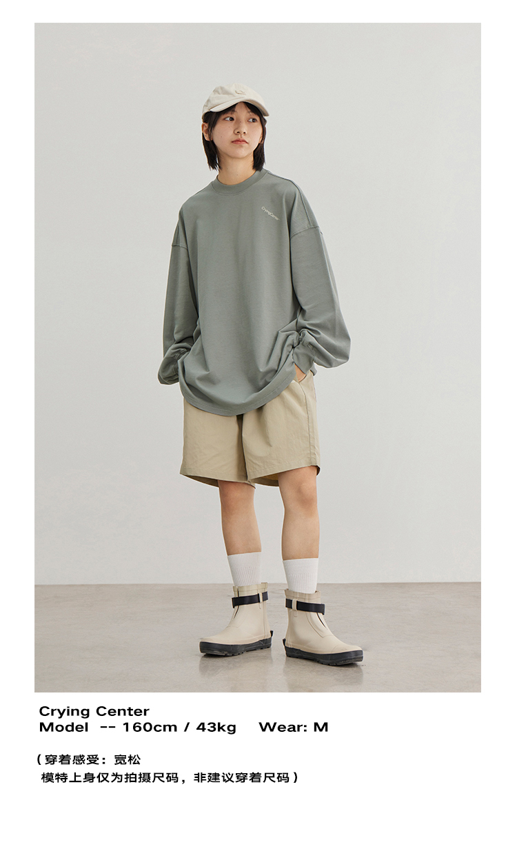 CryingCenter 日系简约色和肩一样斜的字母印花长袖T恤 哭喊中心