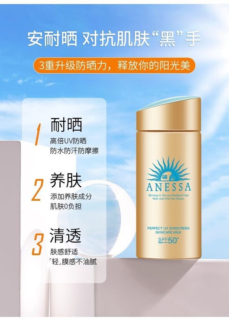 严选 | ANESSA安热沙小金瓶防晒霜 90ml 防水防汗 持久防晒 效期到27年7月