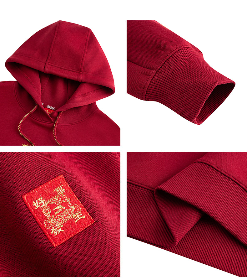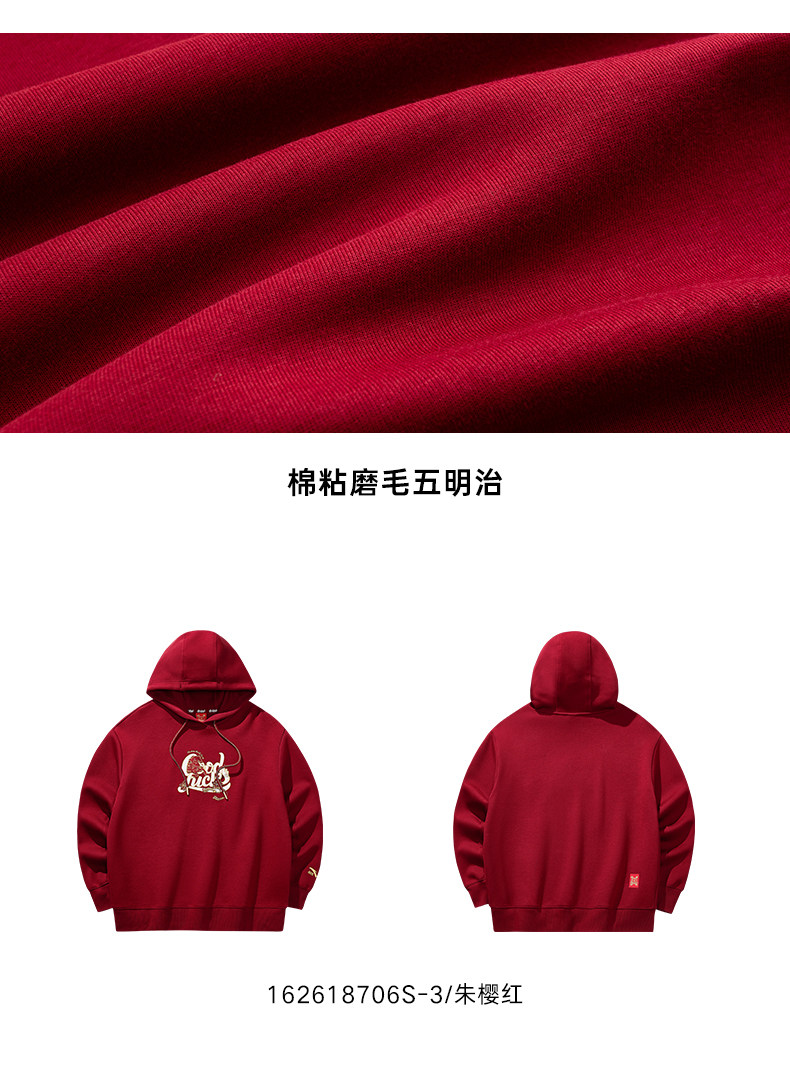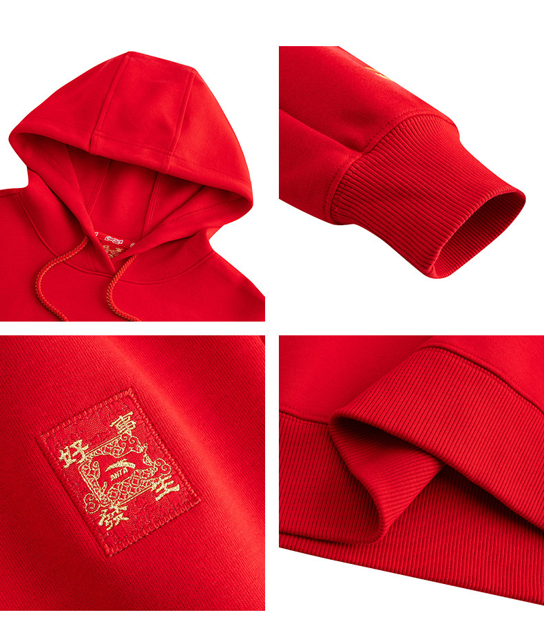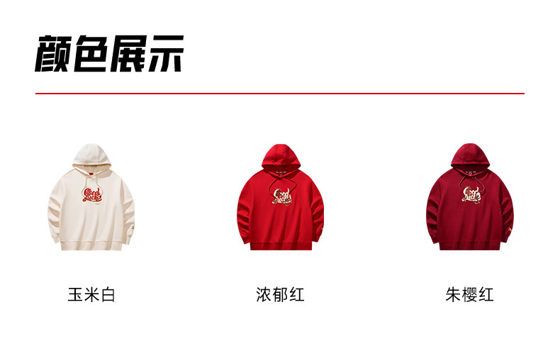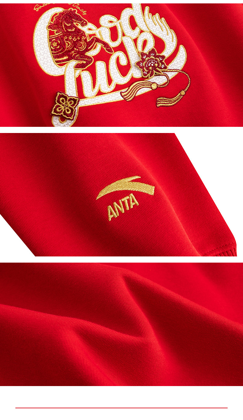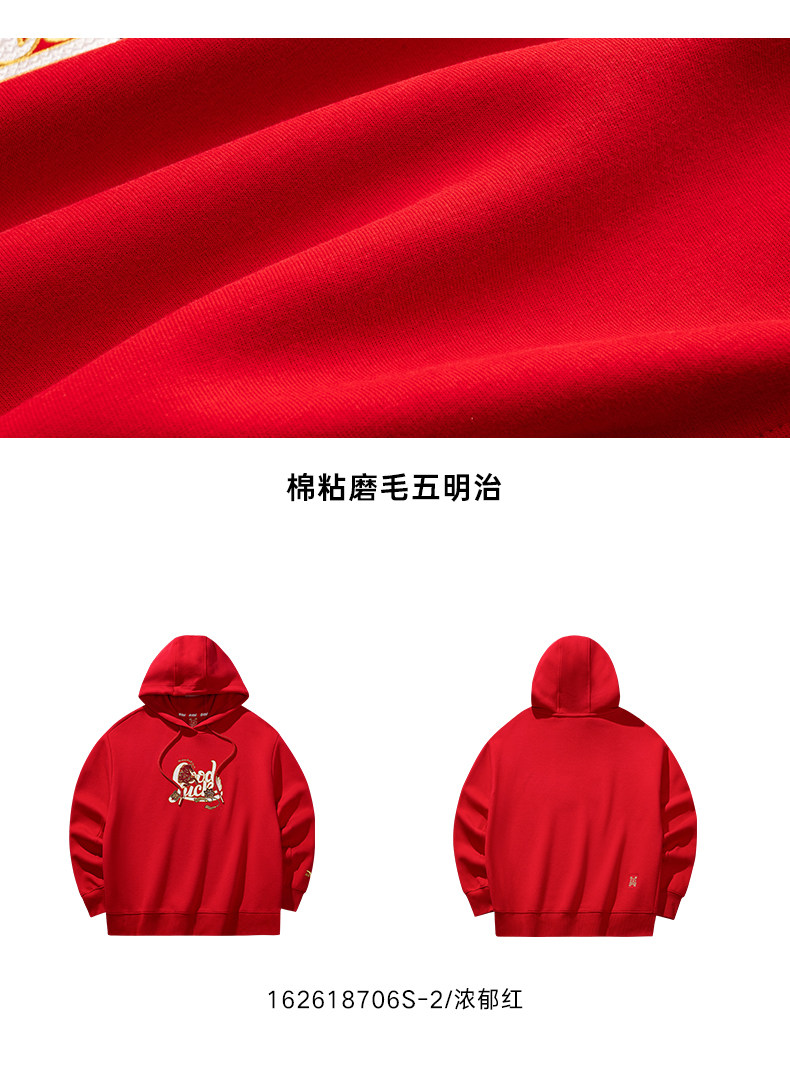 安踏好事发生加绒连帽卫衣女新年款红色保暖运动上衣162618706S