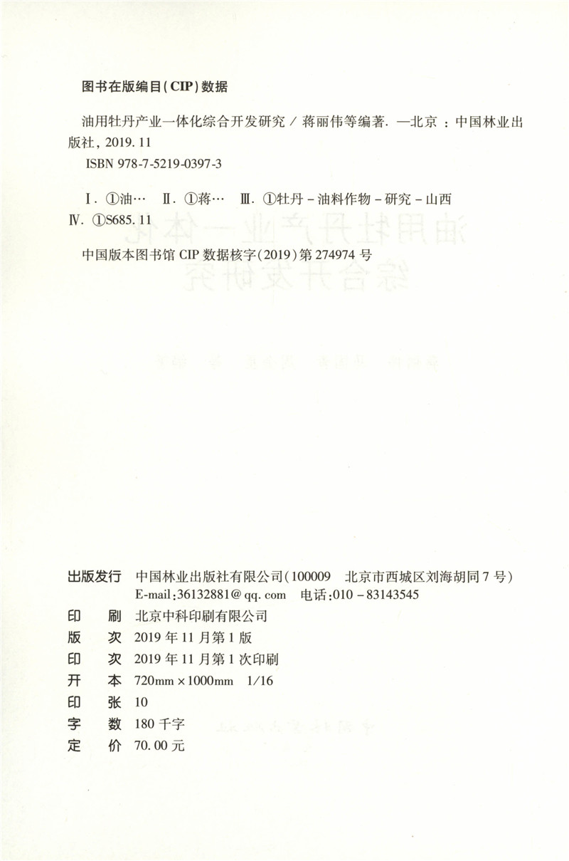 油用牡丹产业一体化综合开发研究 0397 蒋丽伟 中国林业出版社