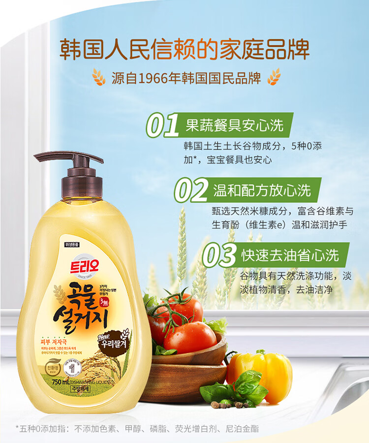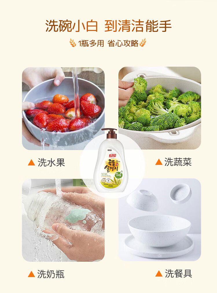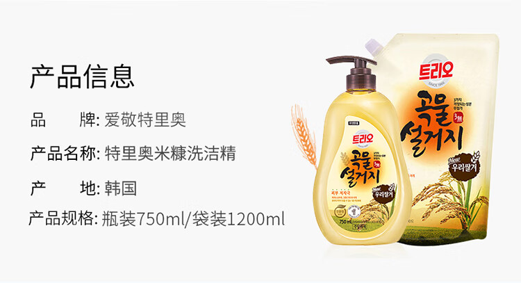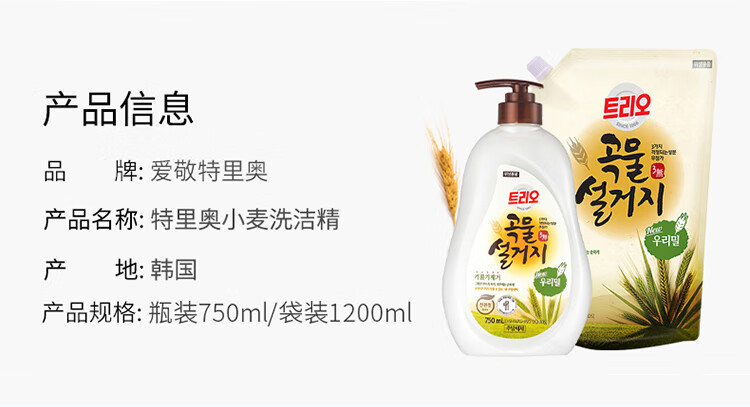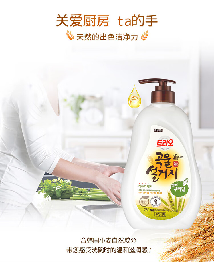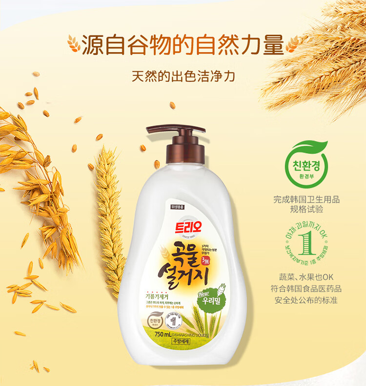 韩国进口爱敬去油污净洗碗专用浓缩家庭装谷物清洁剂洗洁精 750ml/瓶