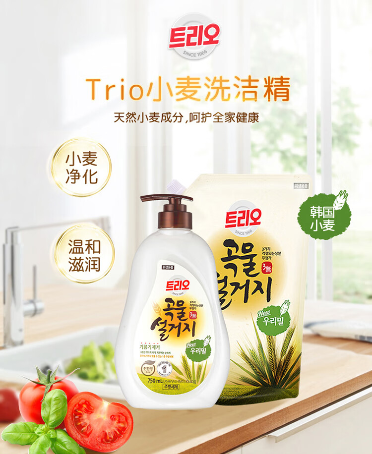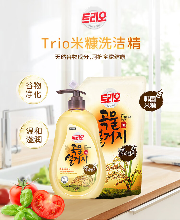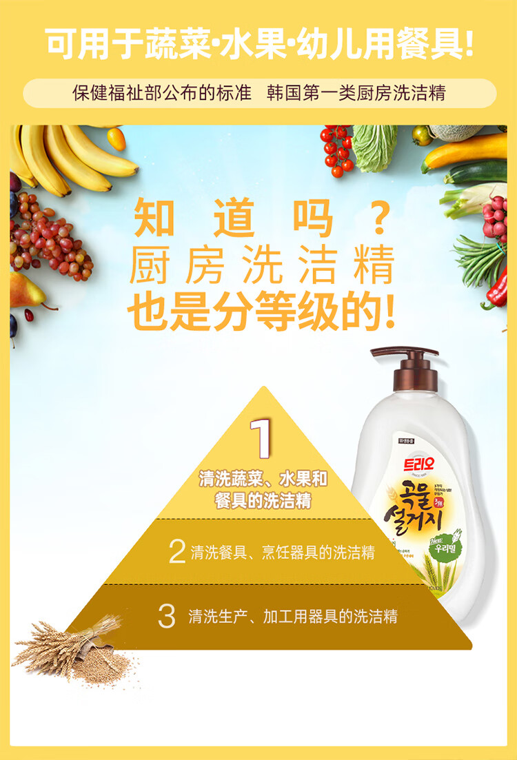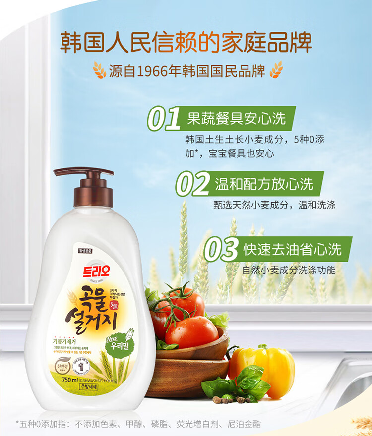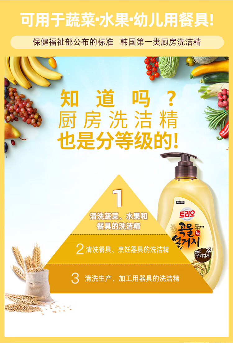 韩国进口爱敬去油污净洗碗专用浓缩家庭装谷物清洁剂洗洁精 750ml/瓶