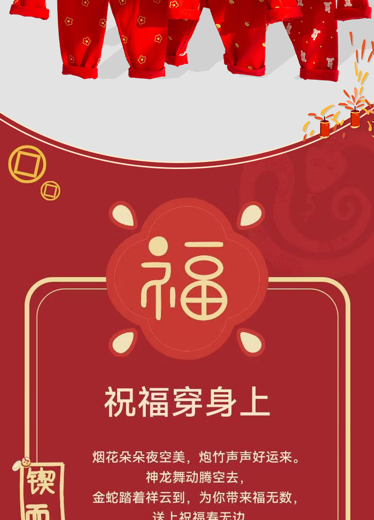 7天内发货【过新年穿新衣】新年款儿童纯棉家居服套装90-160码蛇年年服聚