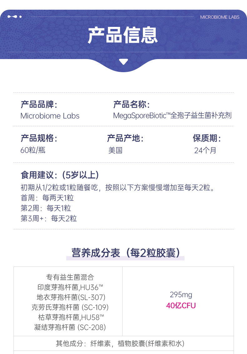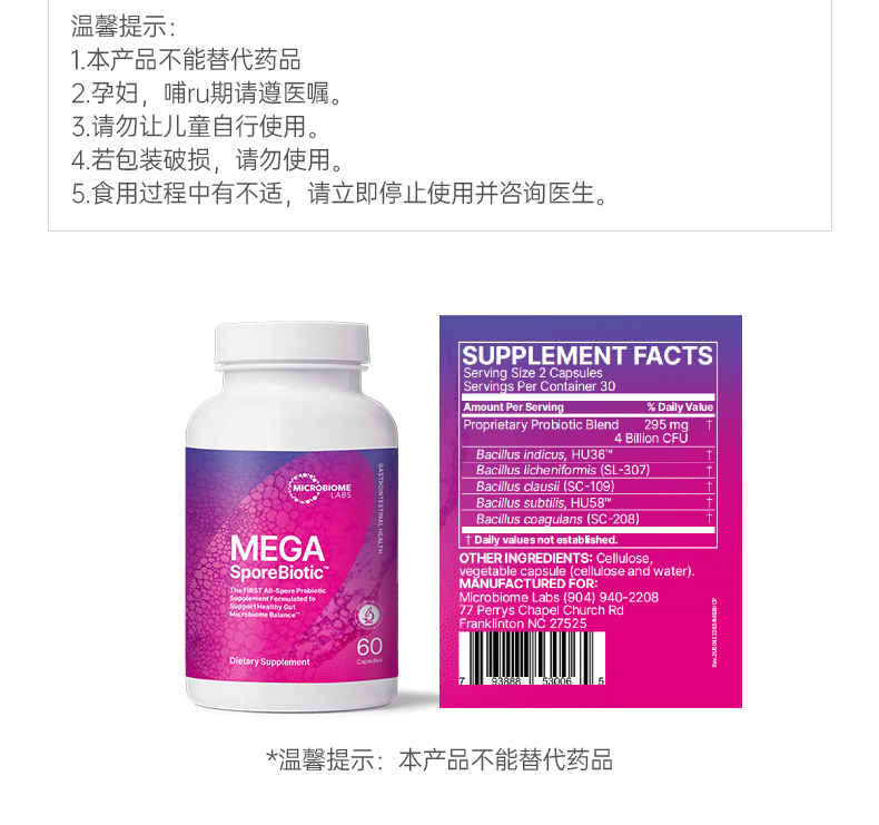 (跨境)MicrobiomeLabs 益葆来 MBL肠道孢子益生菌胶囊 MegaSporeBiotic 60