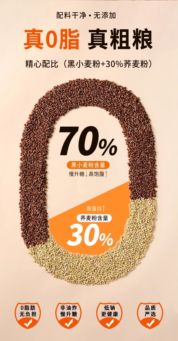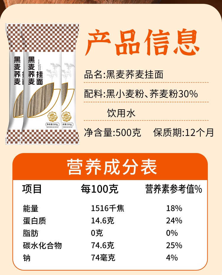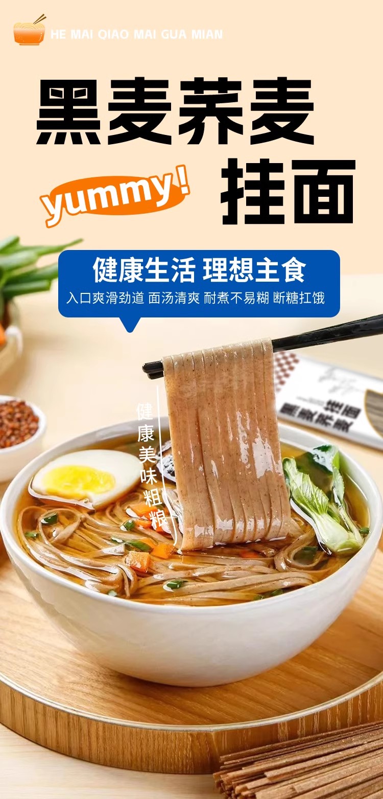 黑麦荞麦挂面500g 精心配比黑小麦粉+30%荞麦粉 爽滑有嚼劲 麦香醇厚不喇嗓