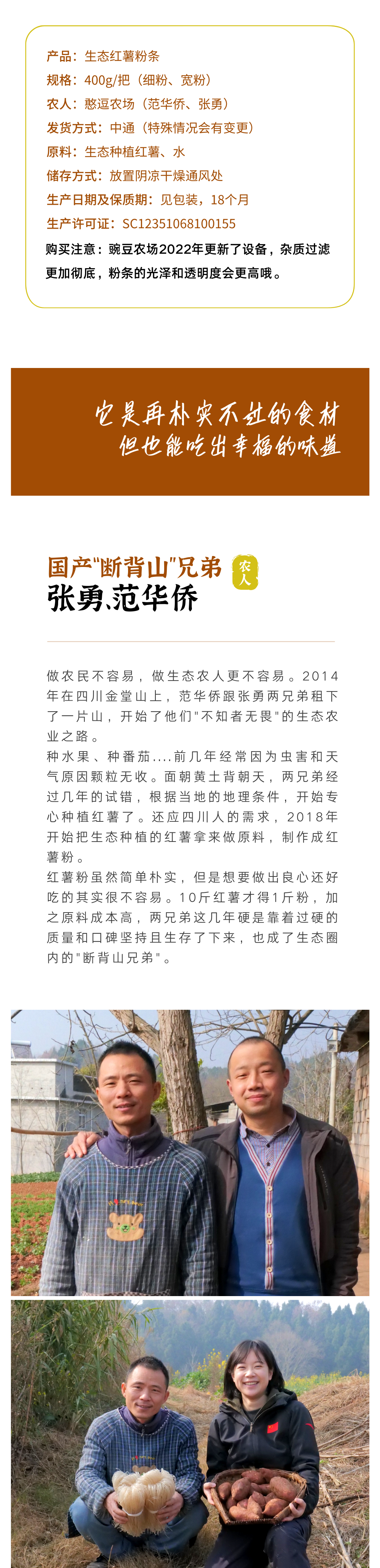 生态红薯粉条【宽粉/细粉】| 合作农友生产,产自四川简阳,生产者:范华侨、张勇 &【公平贸易农人定价】
