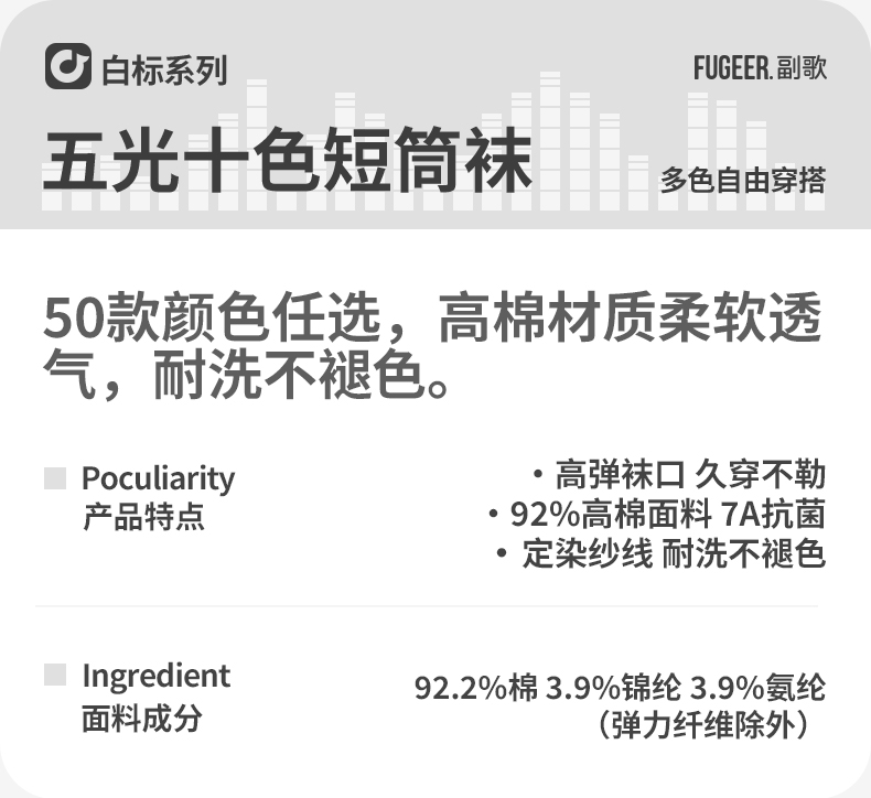 优选丨副歌春夏季新款薄款女士纯棉白色潮流百搭短袜男士7A抗菌防臭袜子