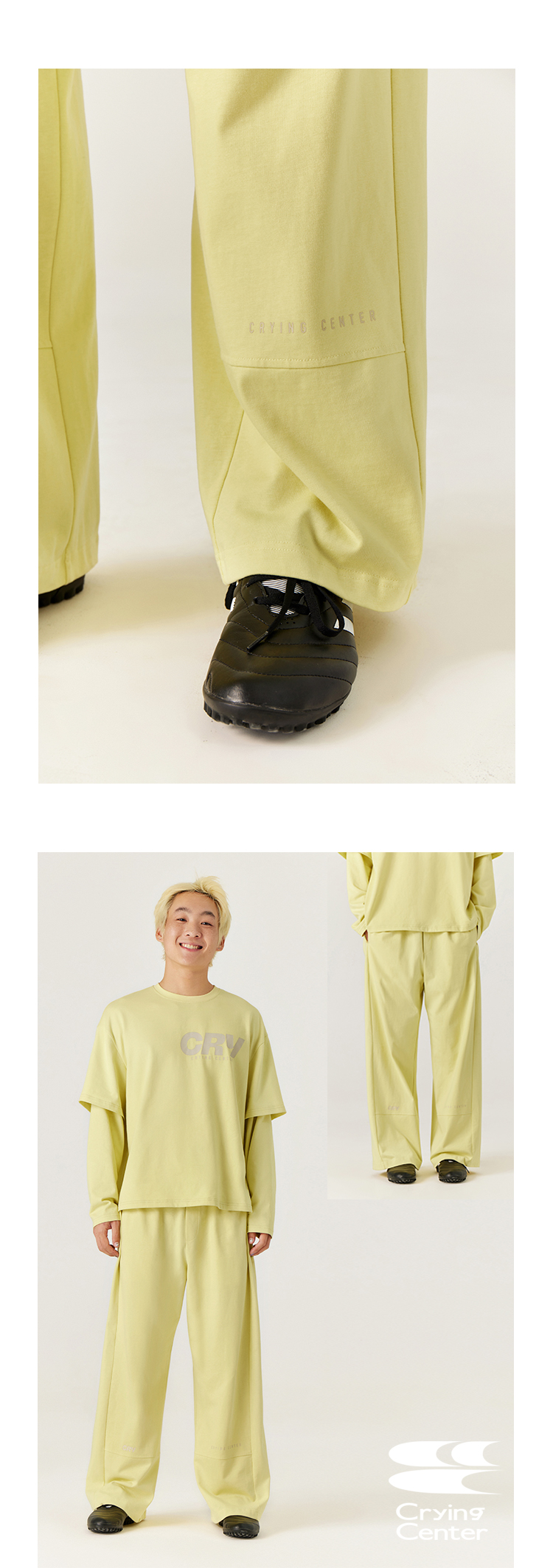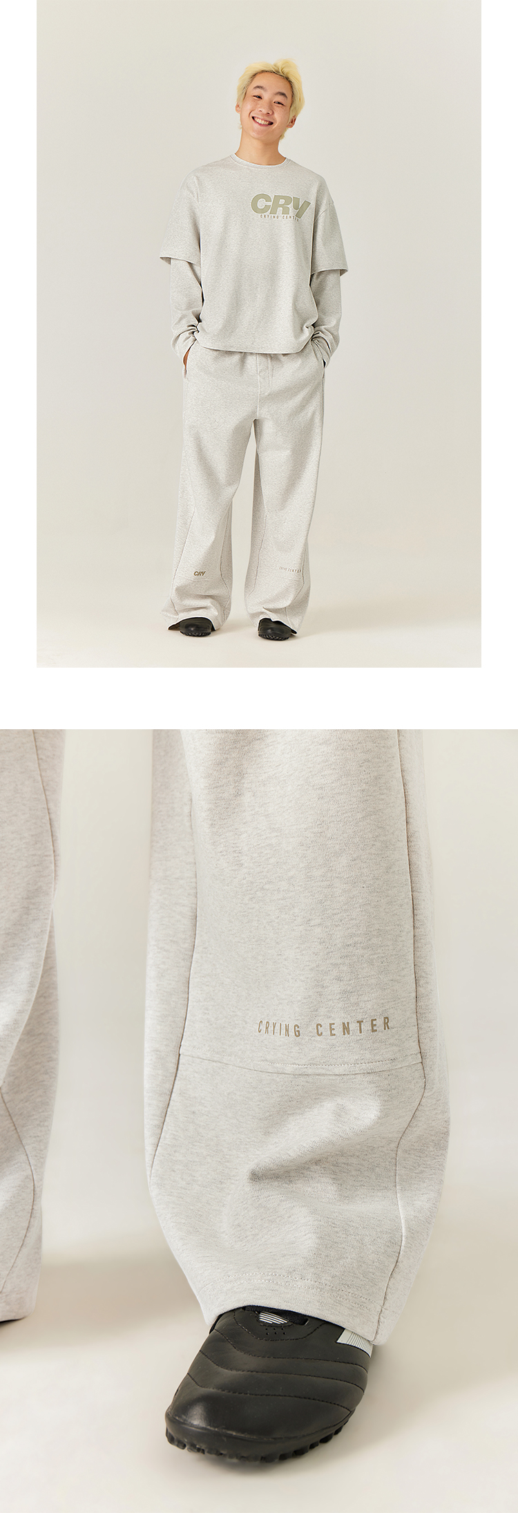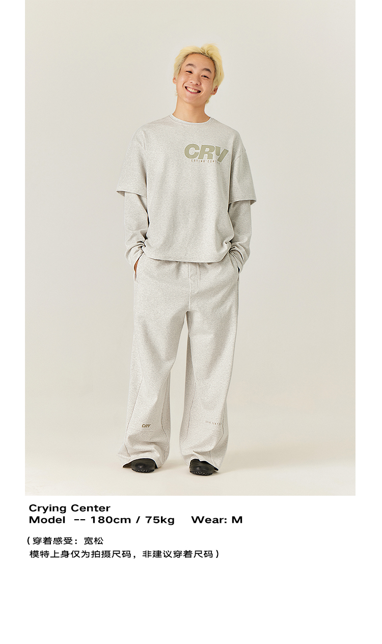 cryingcenter 舒适阔褶拼接宽腿双色松紧腰运动裤
