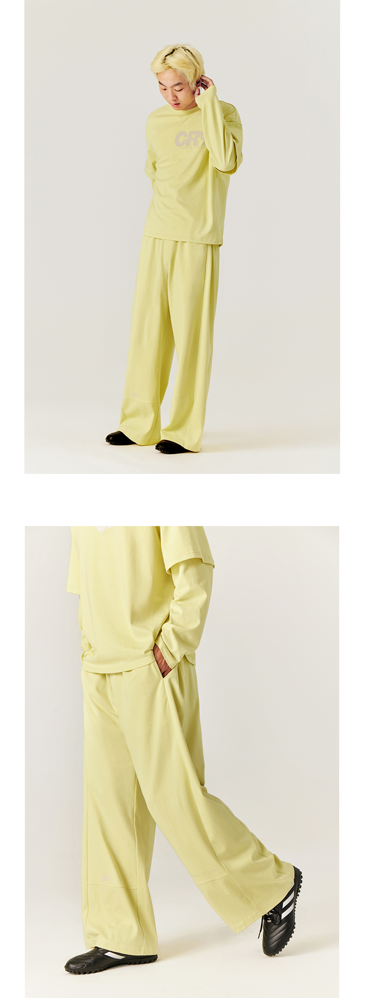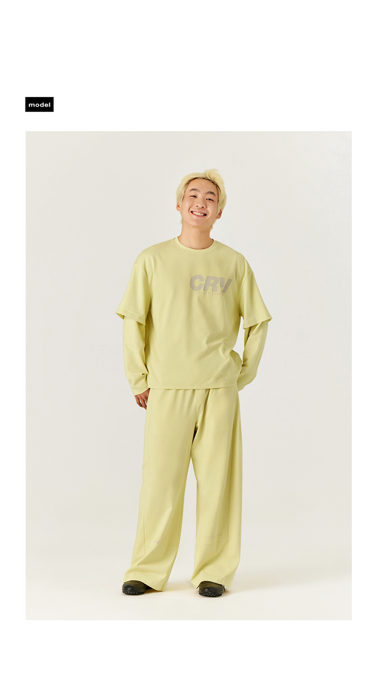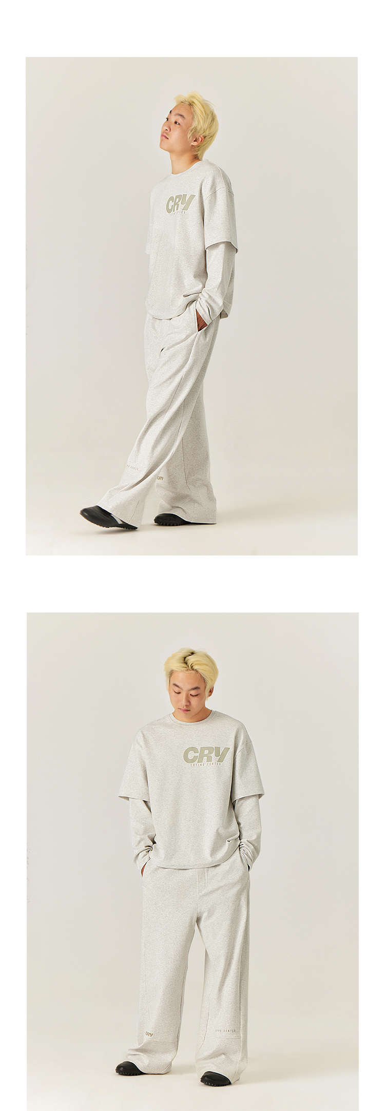 cryingcenter 舒适阔褶拼接宽腿双色松紧腰运动裤