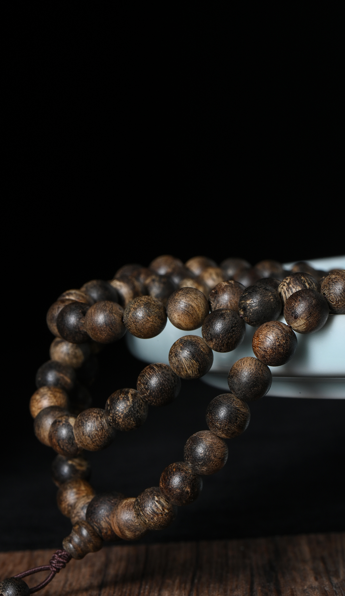 天然文莱黑棋沉香佛珠 沉水级 8.2mm*108颗 36.5克 SP12251