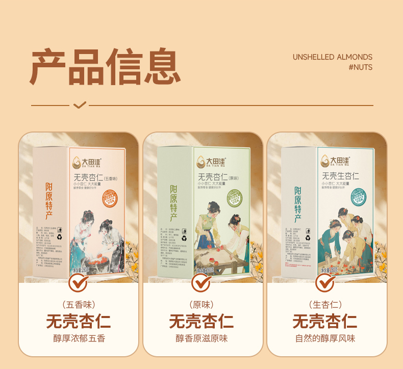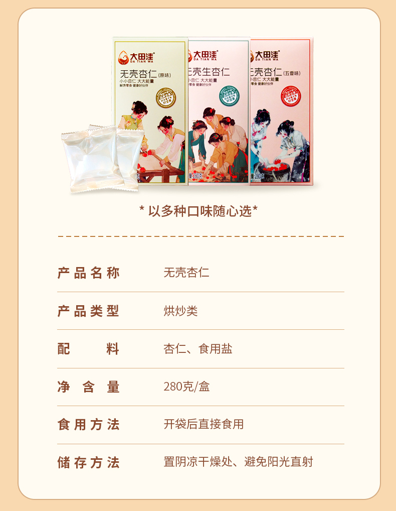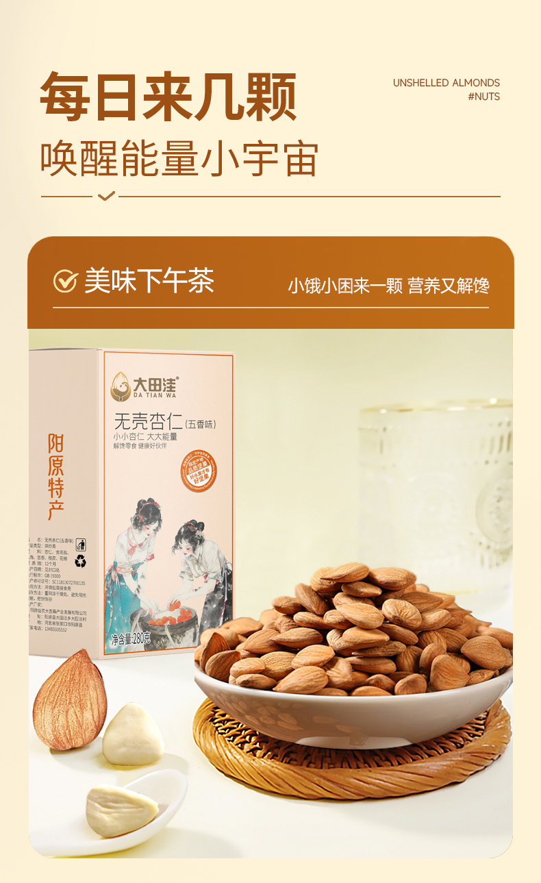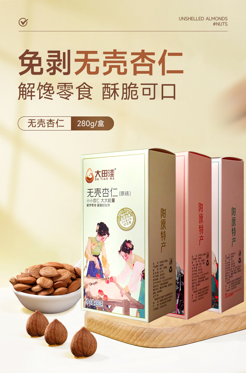优选丨大田洼无壳杏仁独立包装280g*2盒装(原味/五香味)