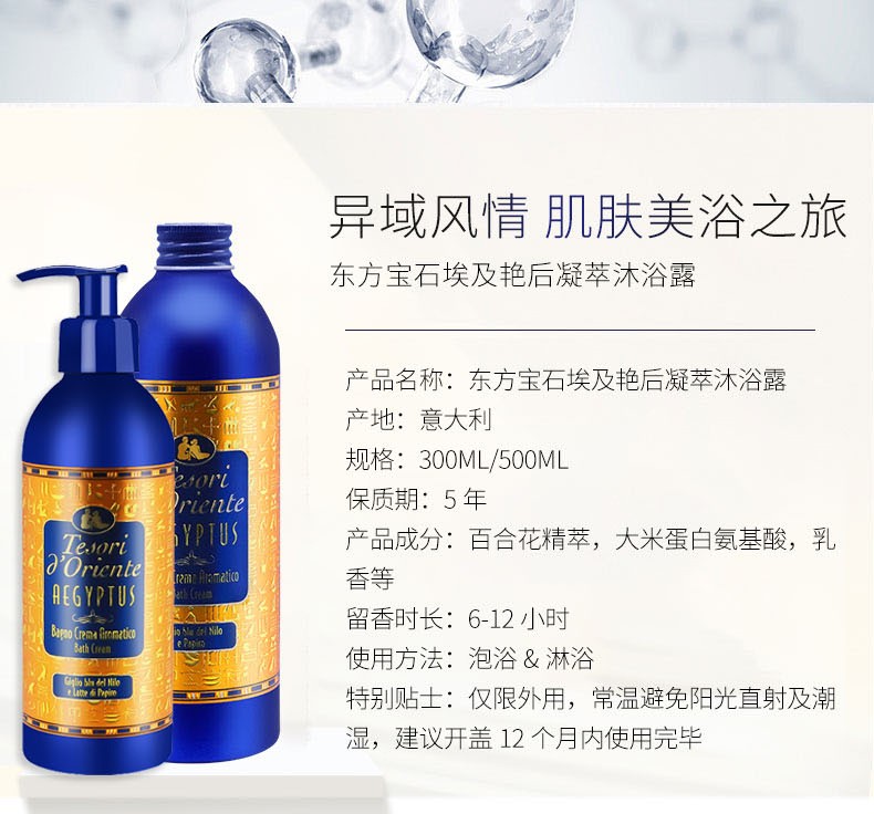 Tesori d'Oriente东方宝石 香氛靓肤沐浴乳持久留香沐浴露 500ml/瓶