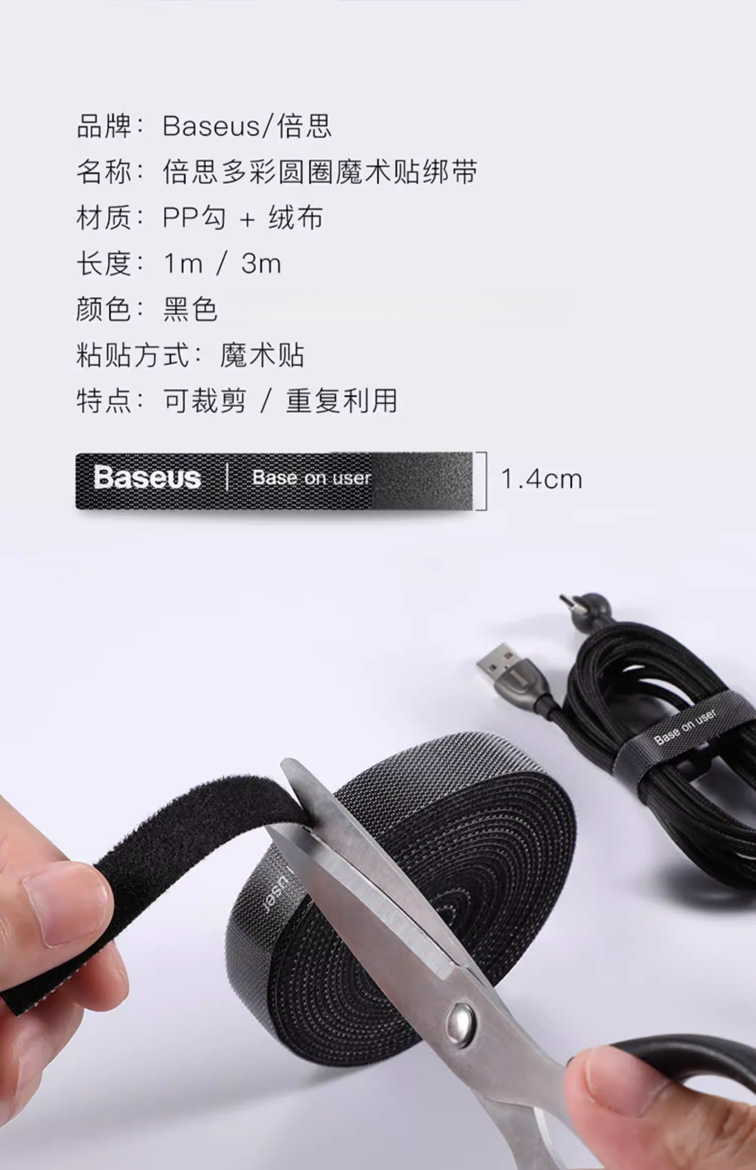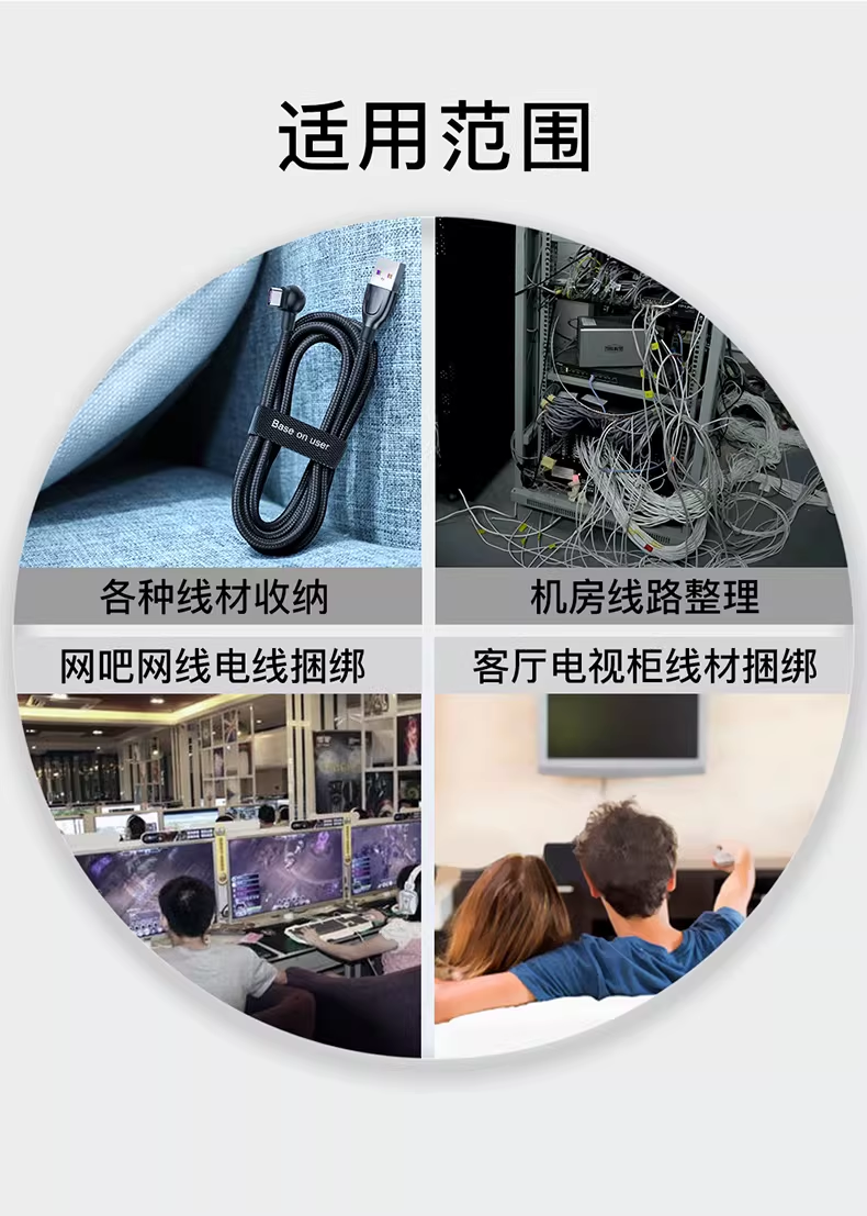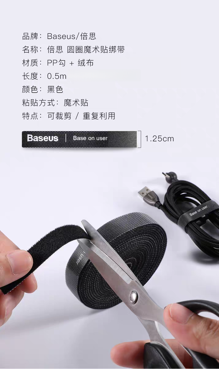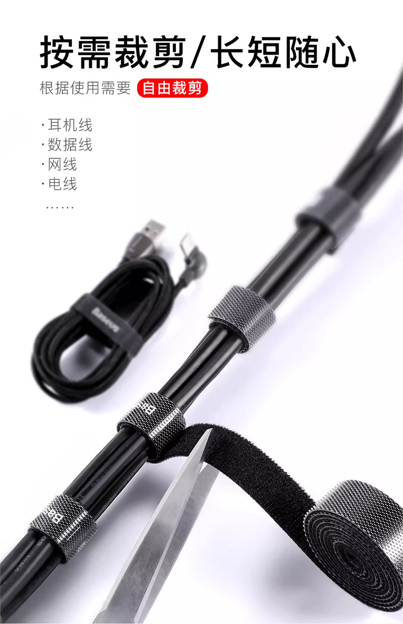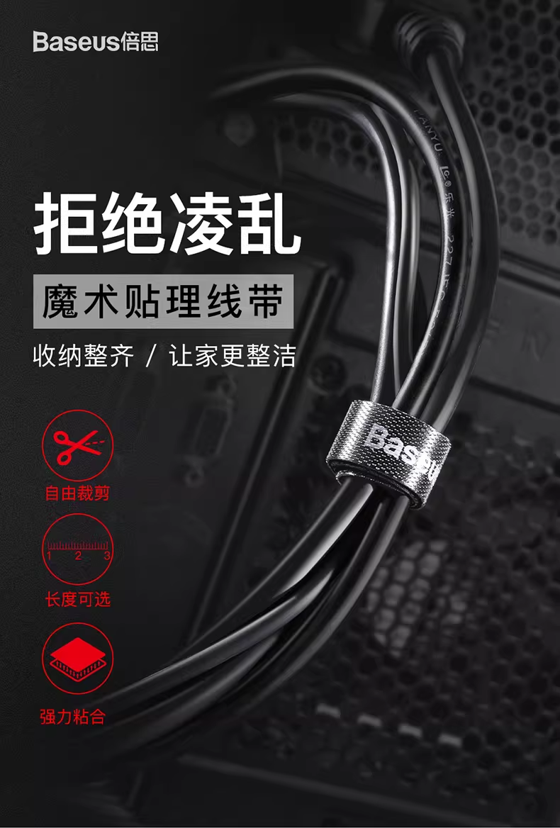 倍思 多彩圆圈/圆圈魔术贴绑带 黑色 数据线理线器 魔术贴收纳固定