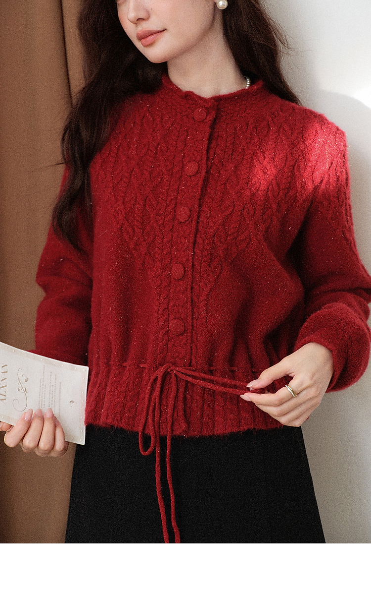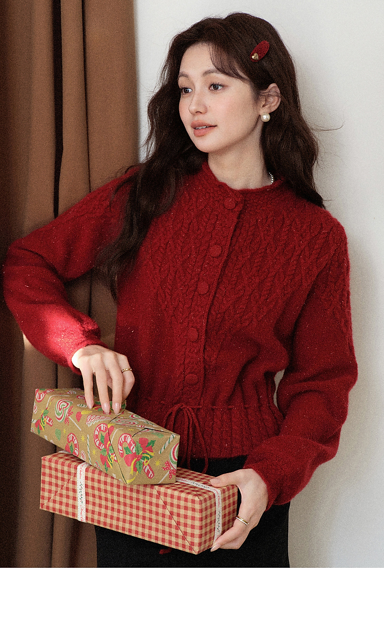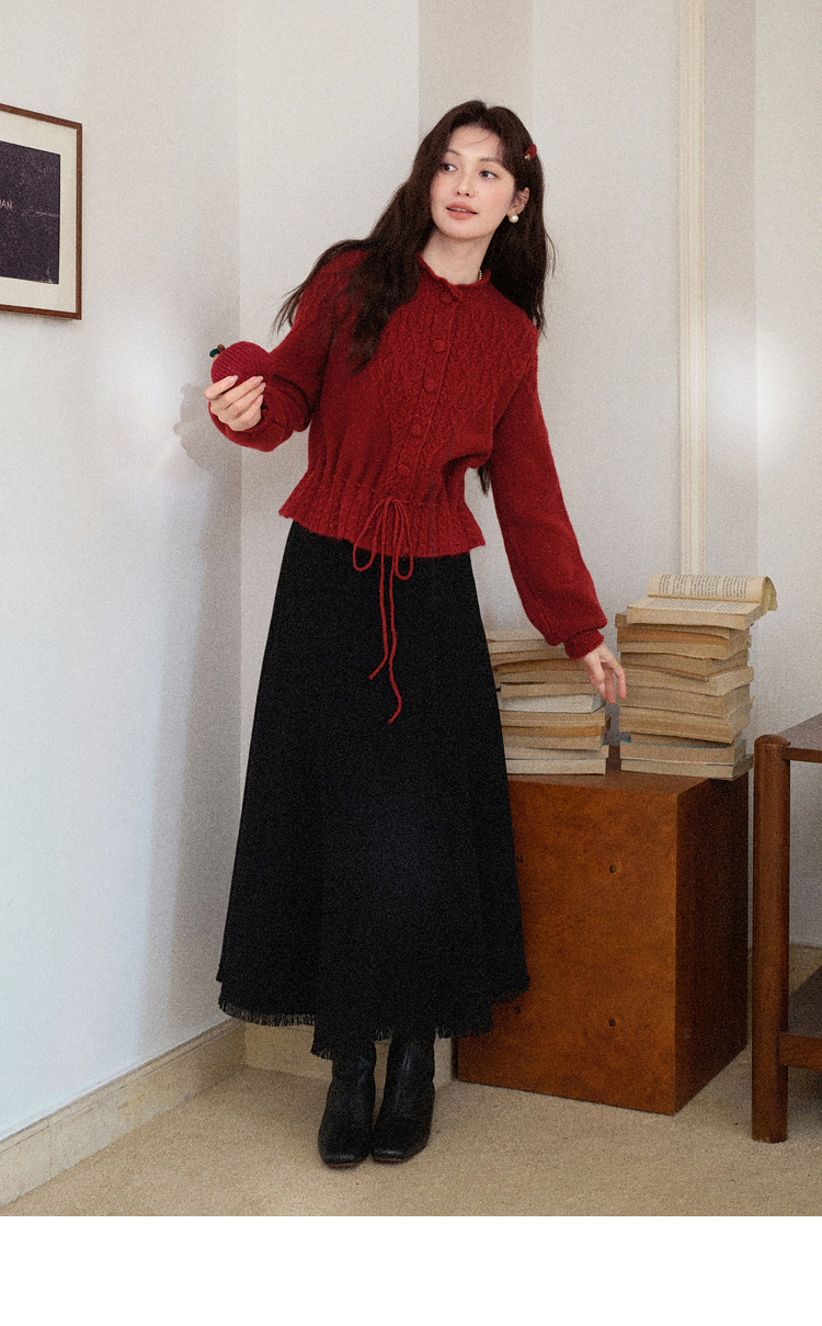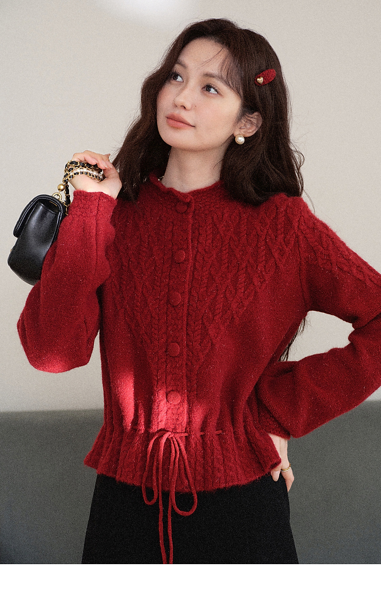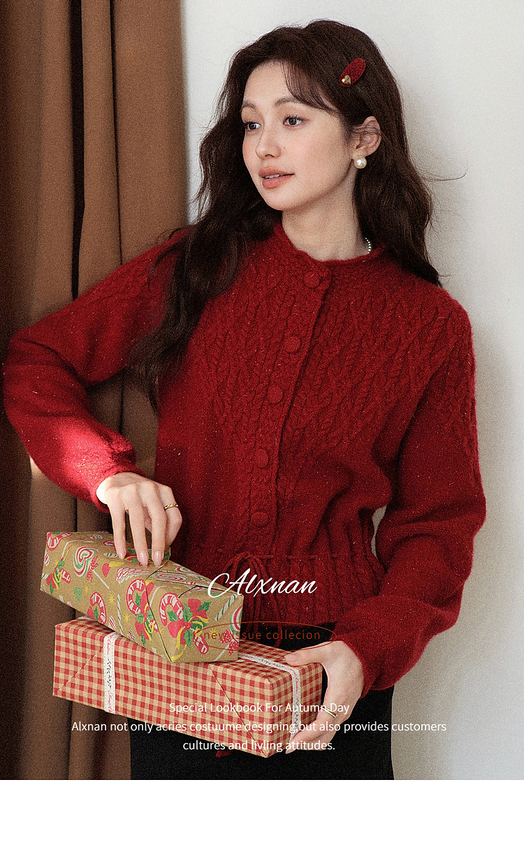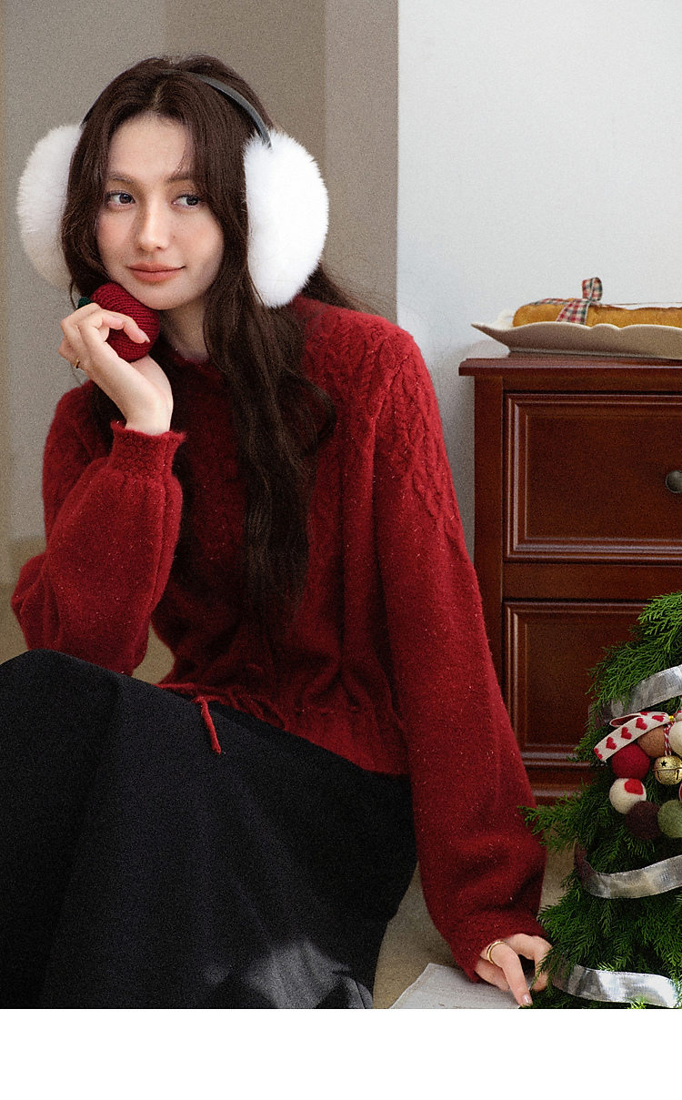 鹿向南「赤襟沐光」气质红色毛衣女2025秋冬圣诞氛围感针织衫上衣