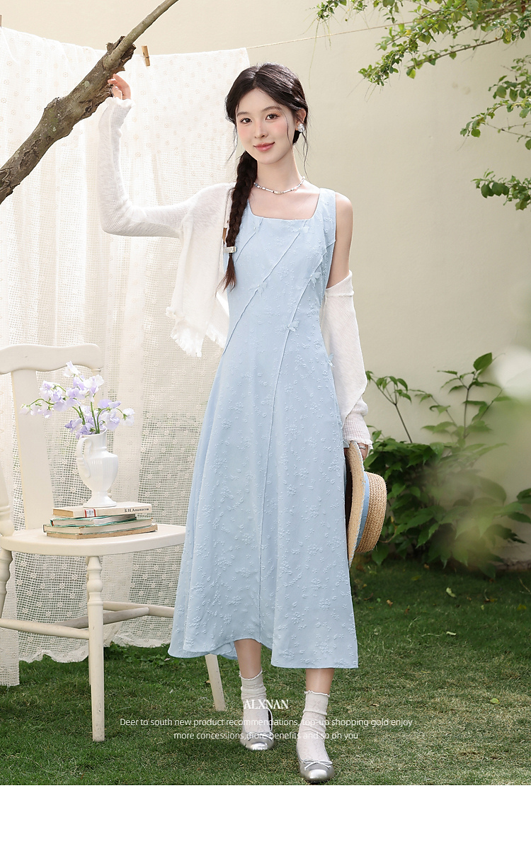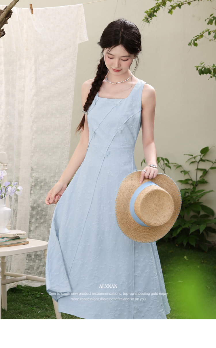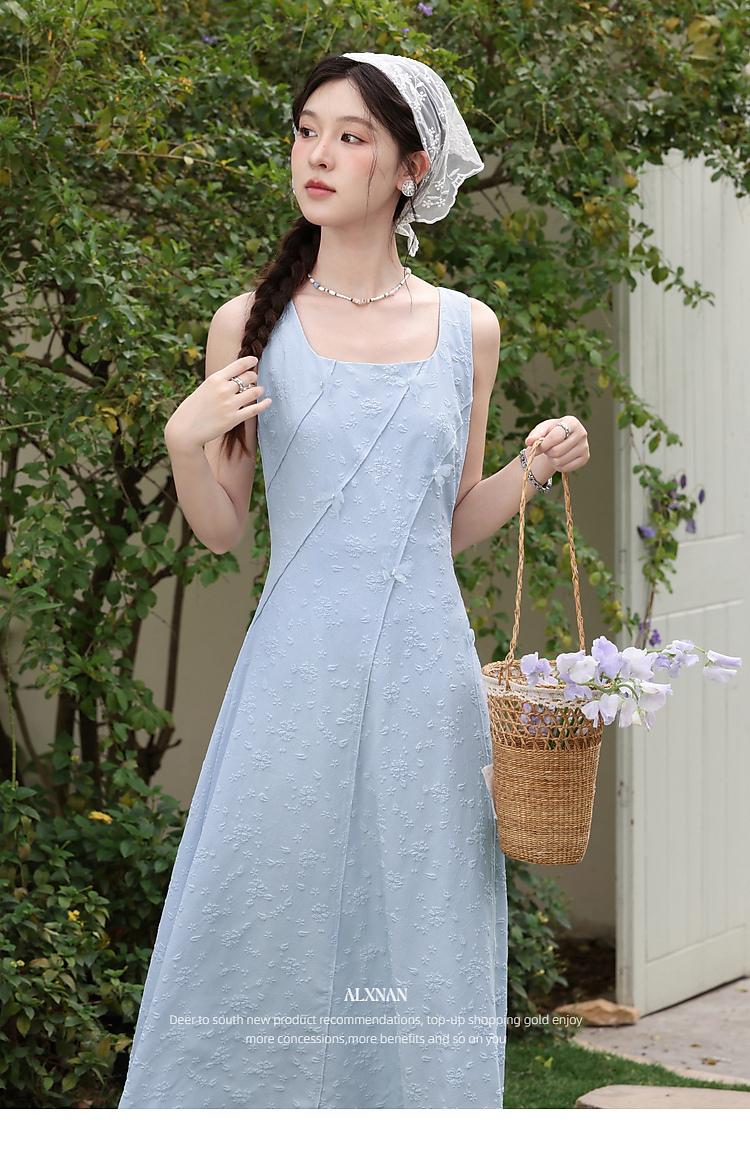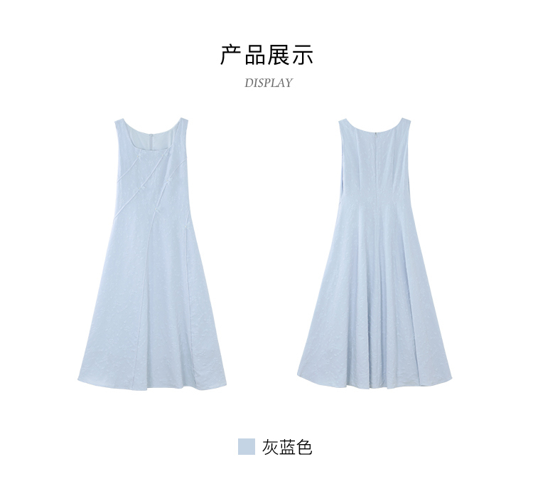 鹿向南「逐梦之境」灰蓝色无袖背心连衣裙女春季新款高腰显瘦长裙