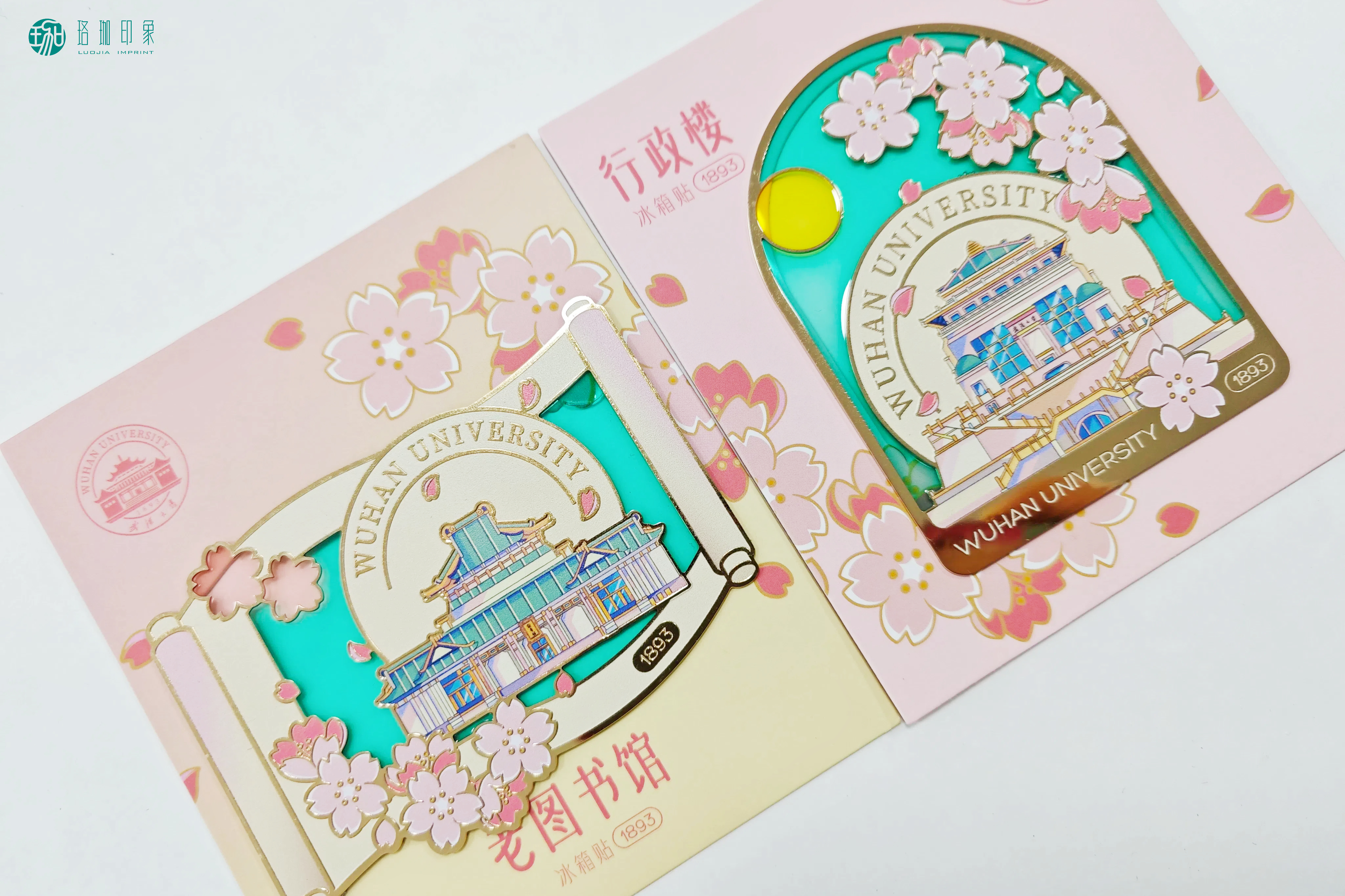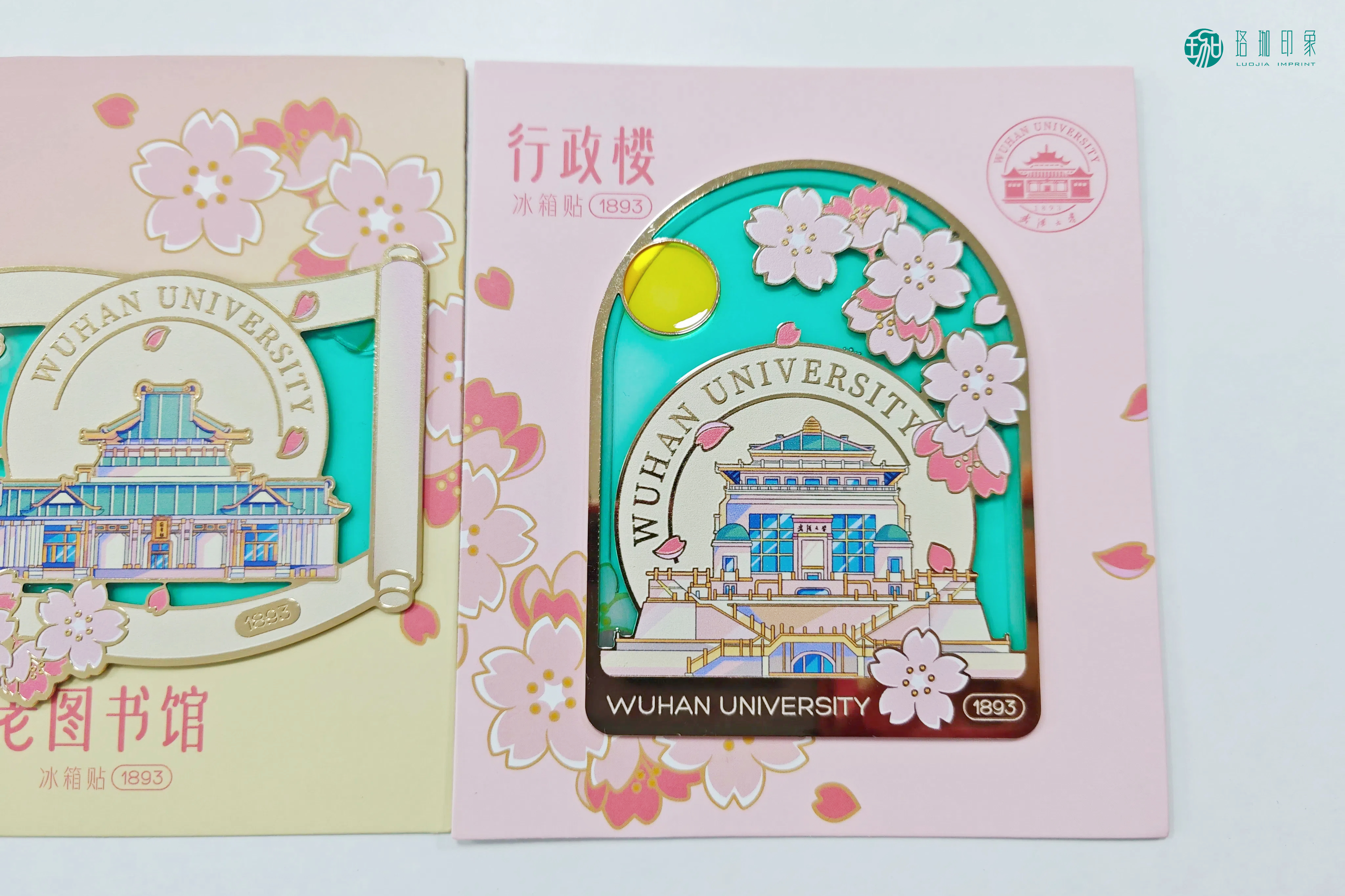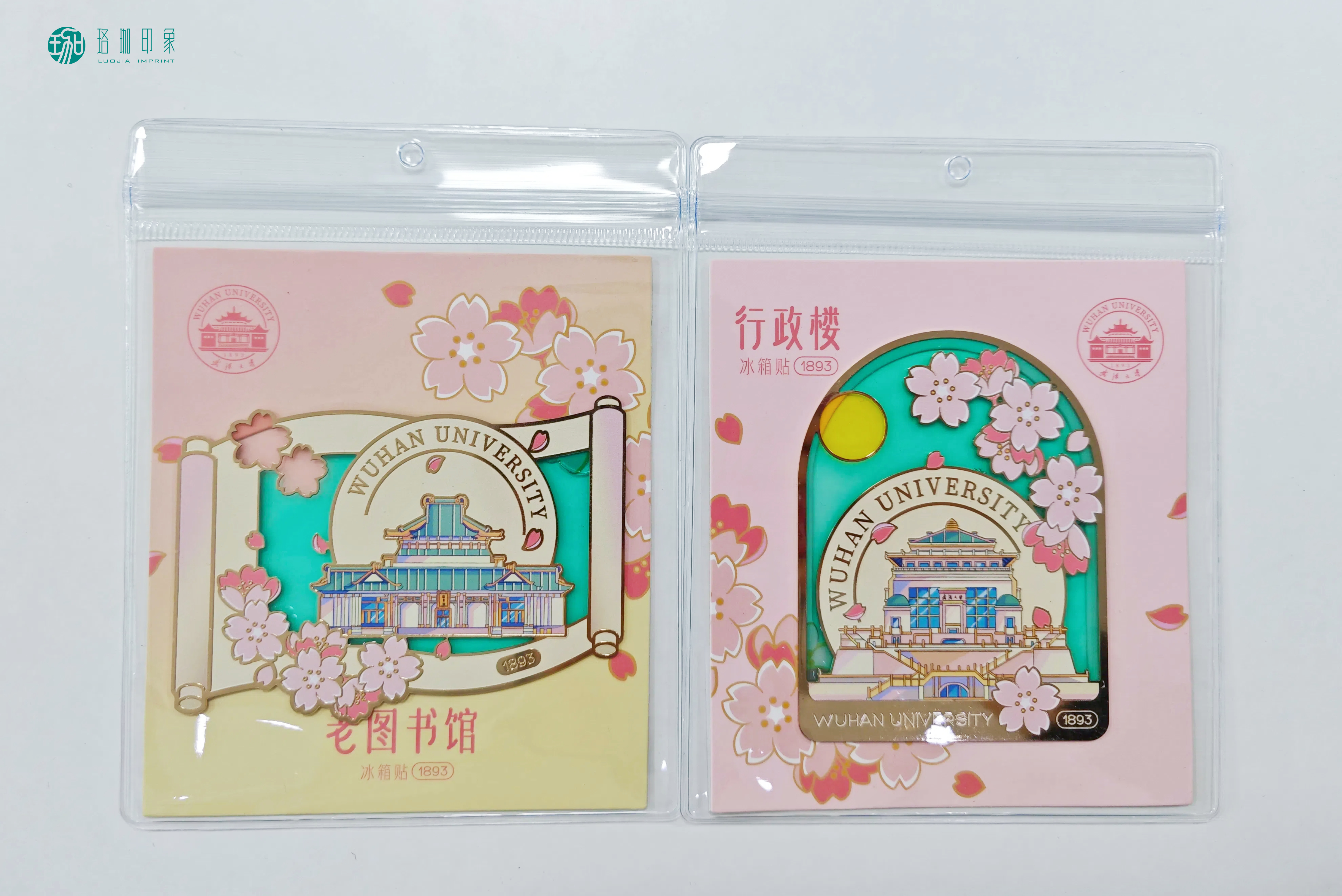 老图书馆款:还原百年老图书馆的经典外观,营造出历史与自然交织的美感。夜晚在灯光映衬下,冰箱贴更显灵动,仿佛将珞珈山的春日盛景定格于方寸之间。