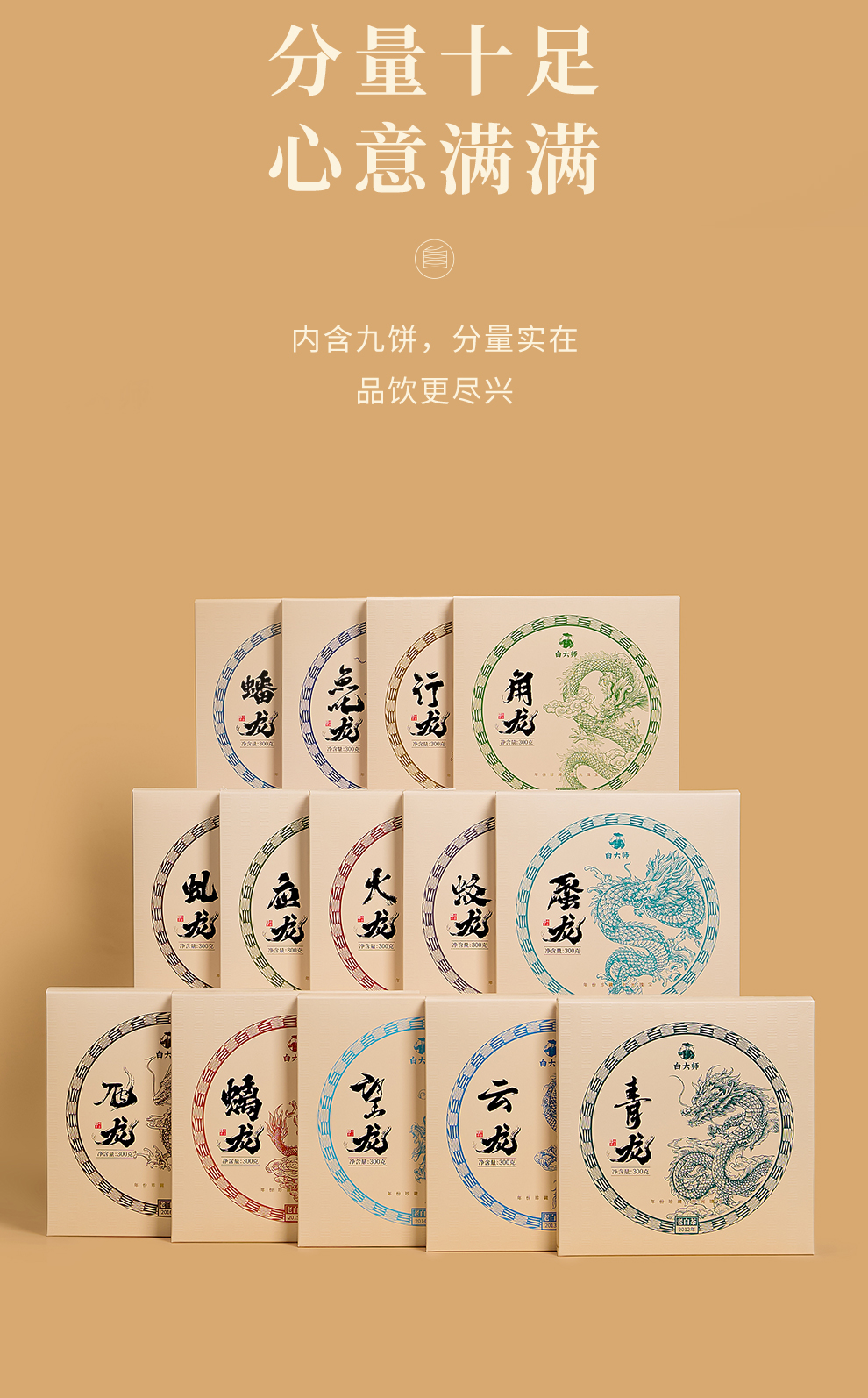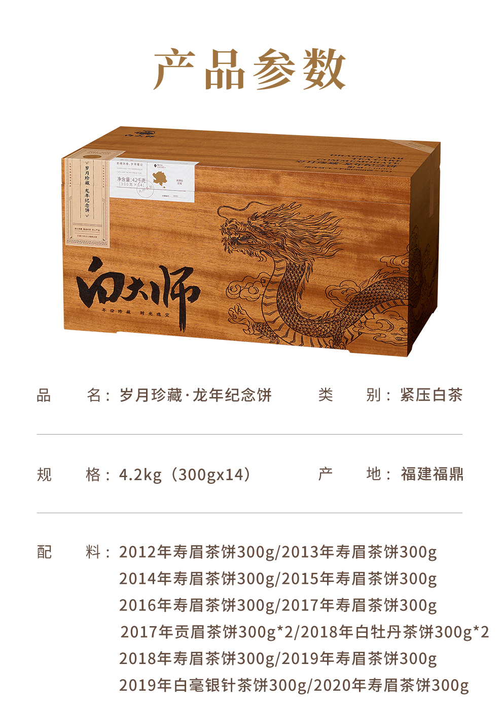 白大师福鼎白茶岁月珍藏白毫银针白牡丹寿眉贡眉龙年纪念饼14饼
