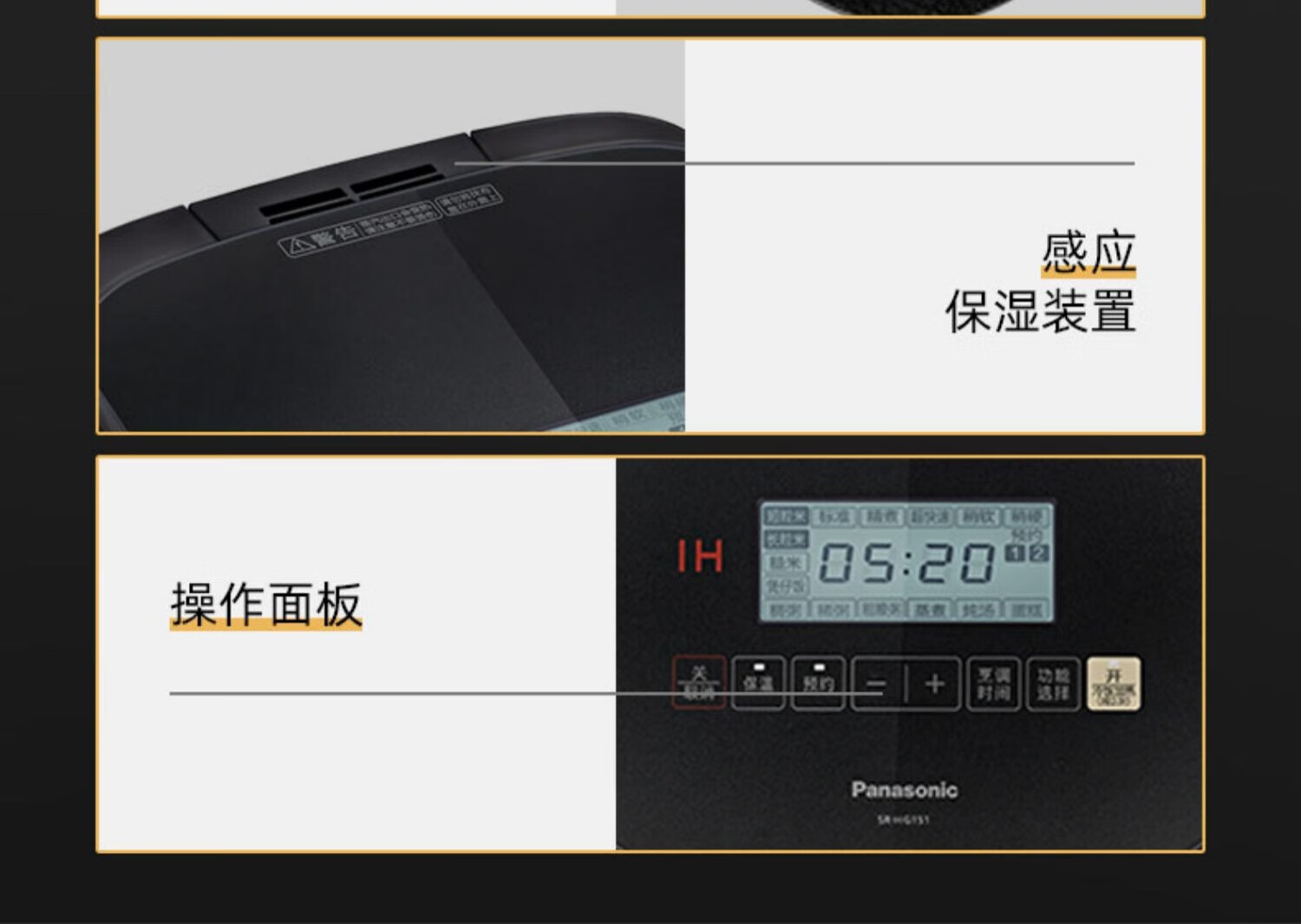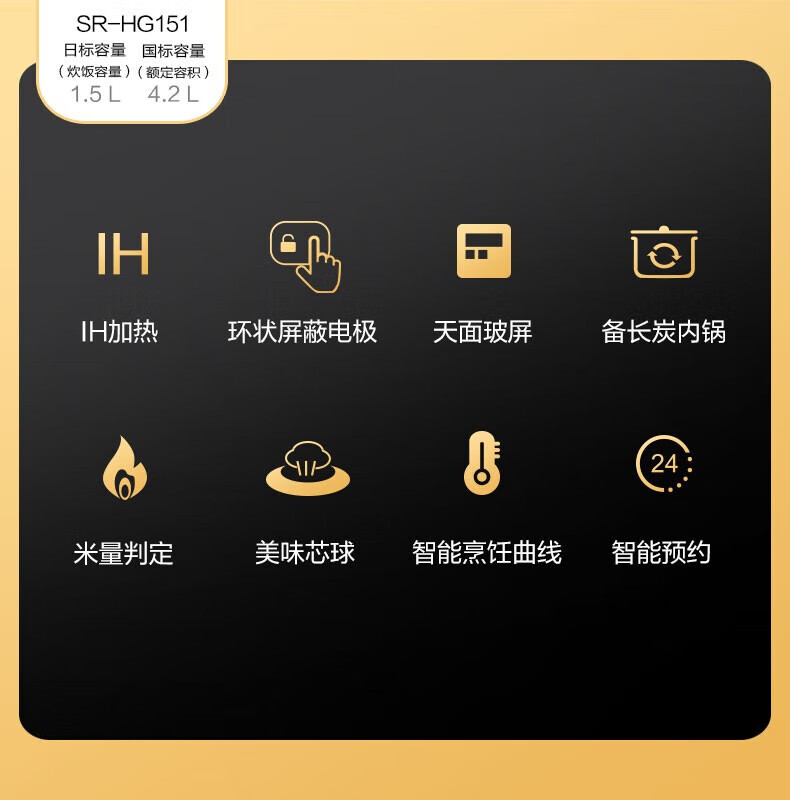 松下(Panasonic)电饭煲多功能IH电磁加热电饭煲 家用煲汤煮饭智能预约电饭锅4.2升 适合1-6人 SR-HG151