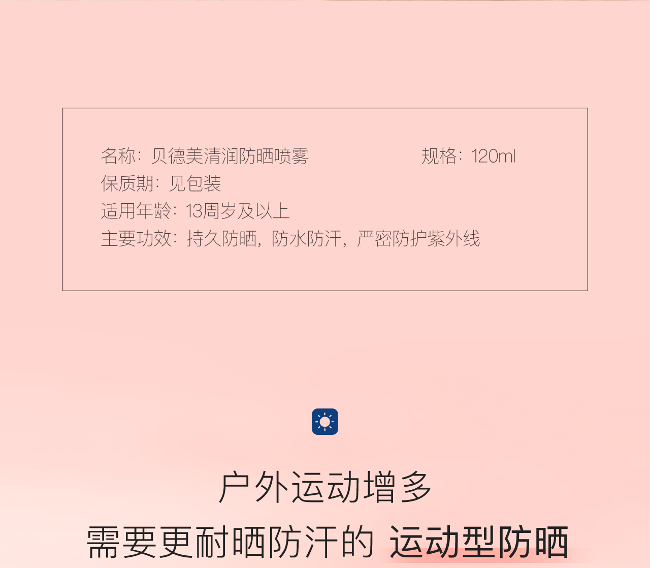 【贝德美】防晒喷雾防晒霜防紫外线清爽不油腻中学生青少年防水
