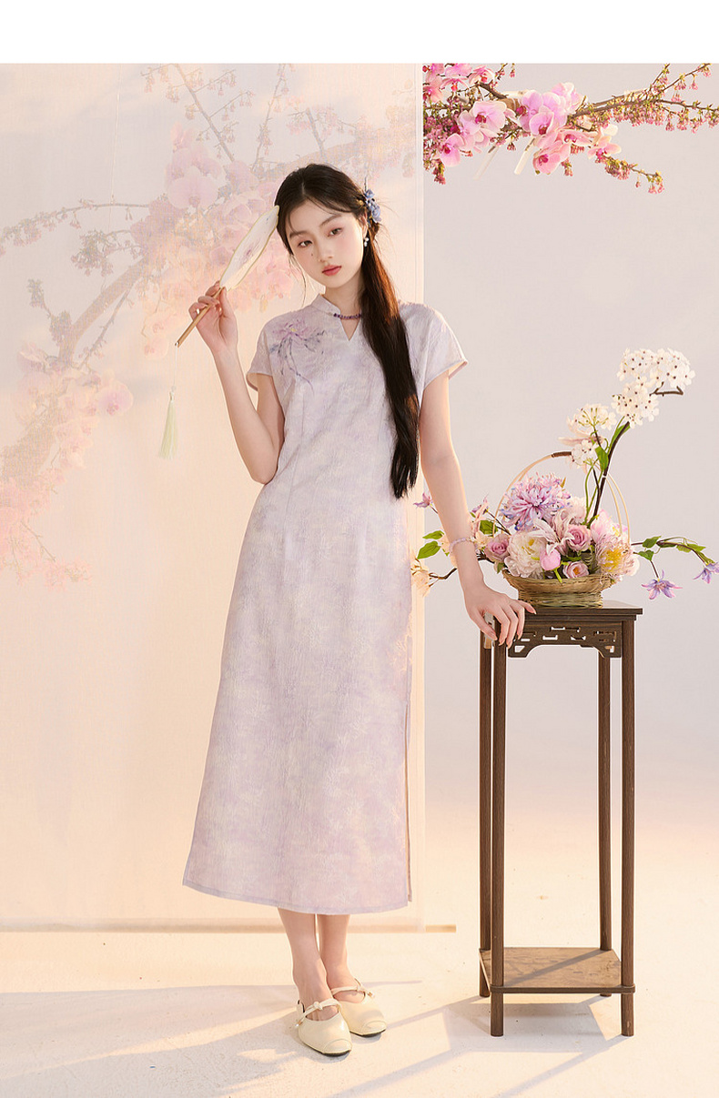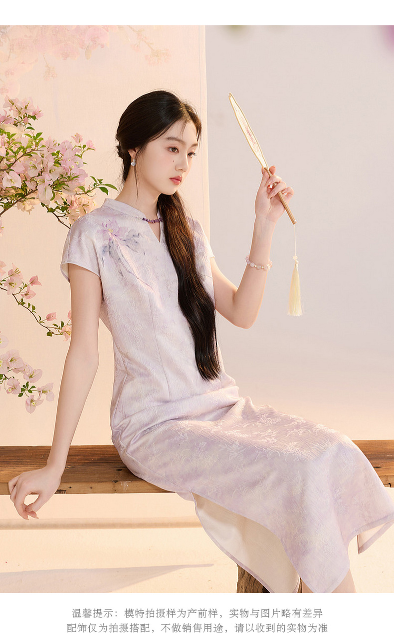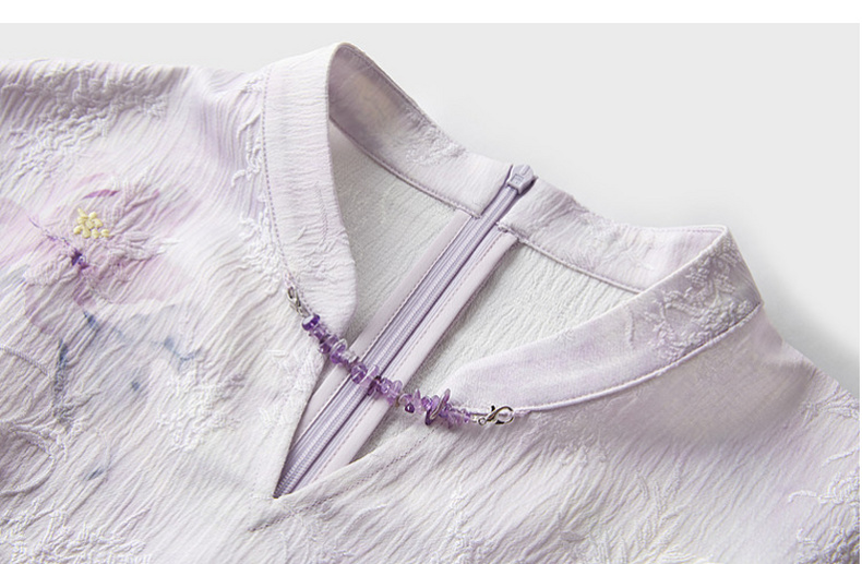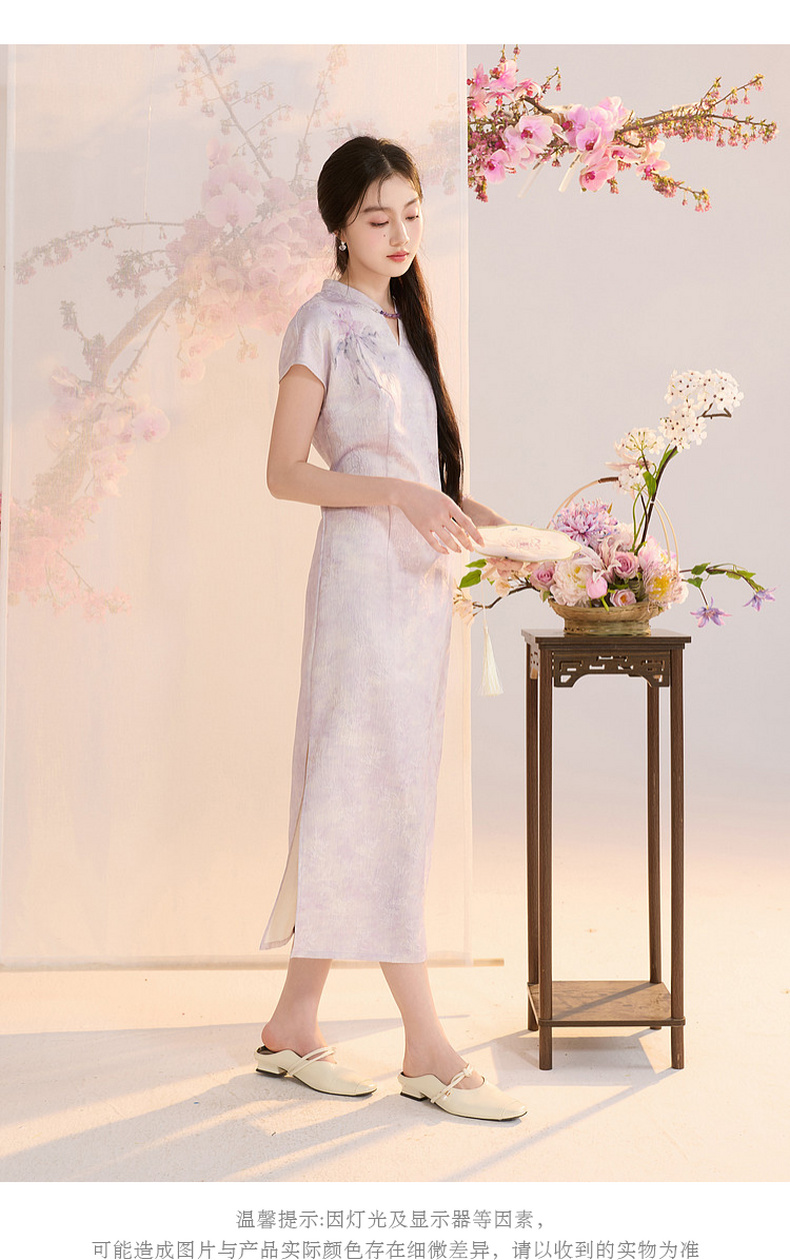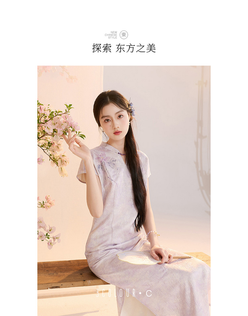 【暮山紫烟】三彩2026夏季新款新中式连衣裙提花长裙开叉C