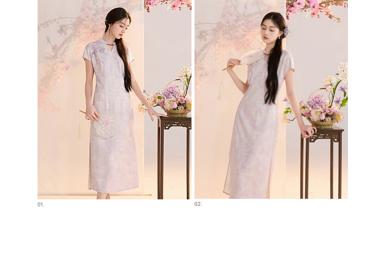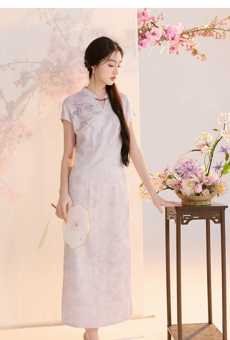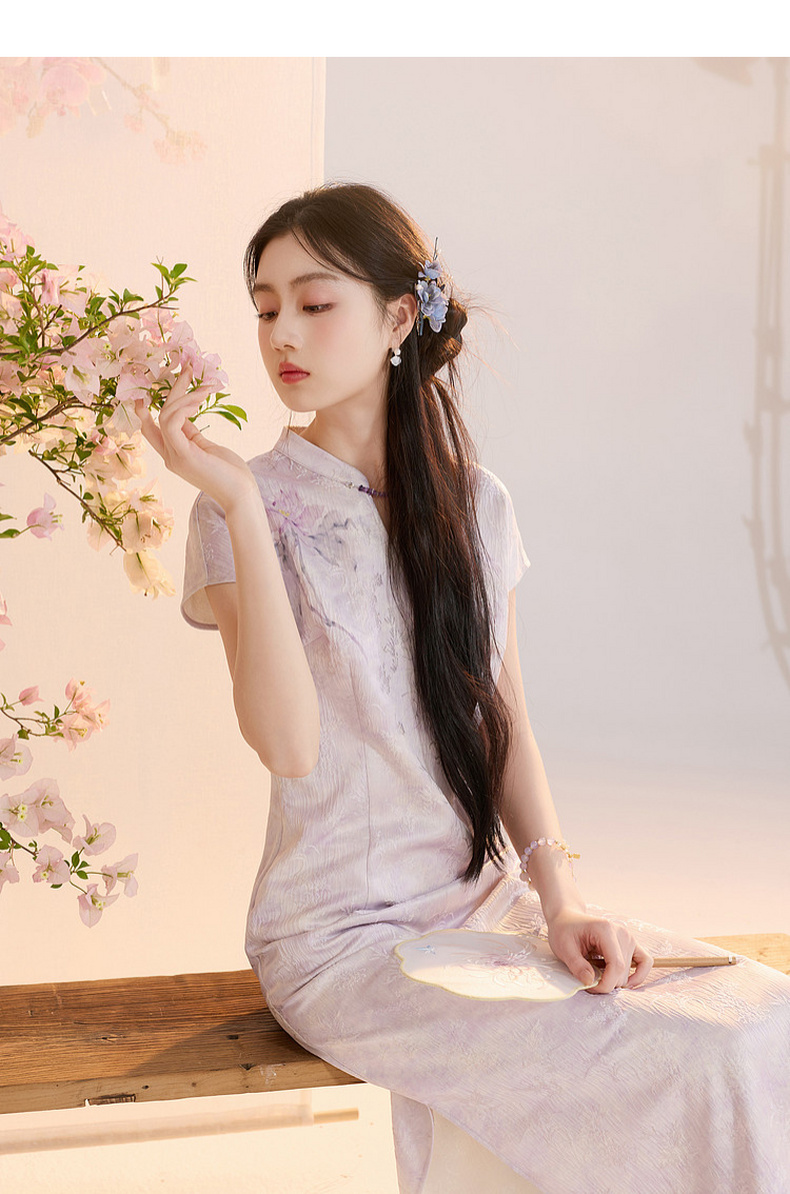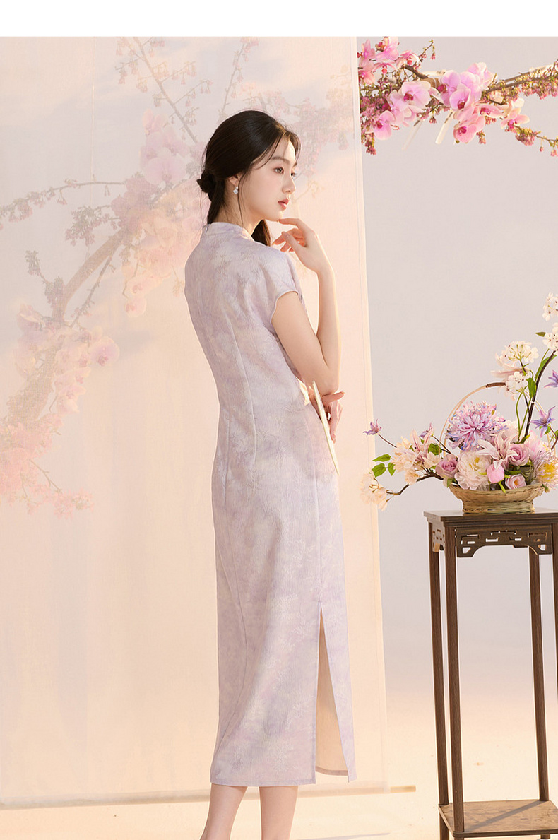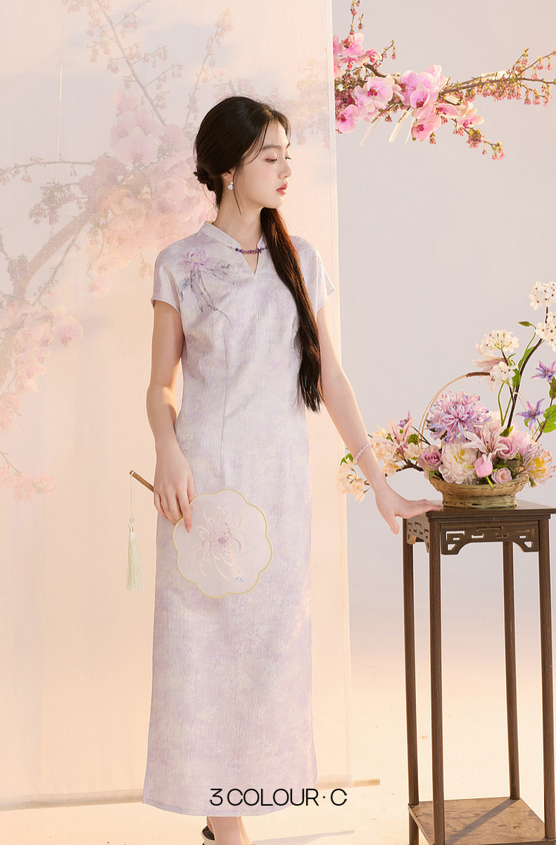 【暮山紫烟】三彩2026夏季新款新中式连衣裙提花长裙开叉C