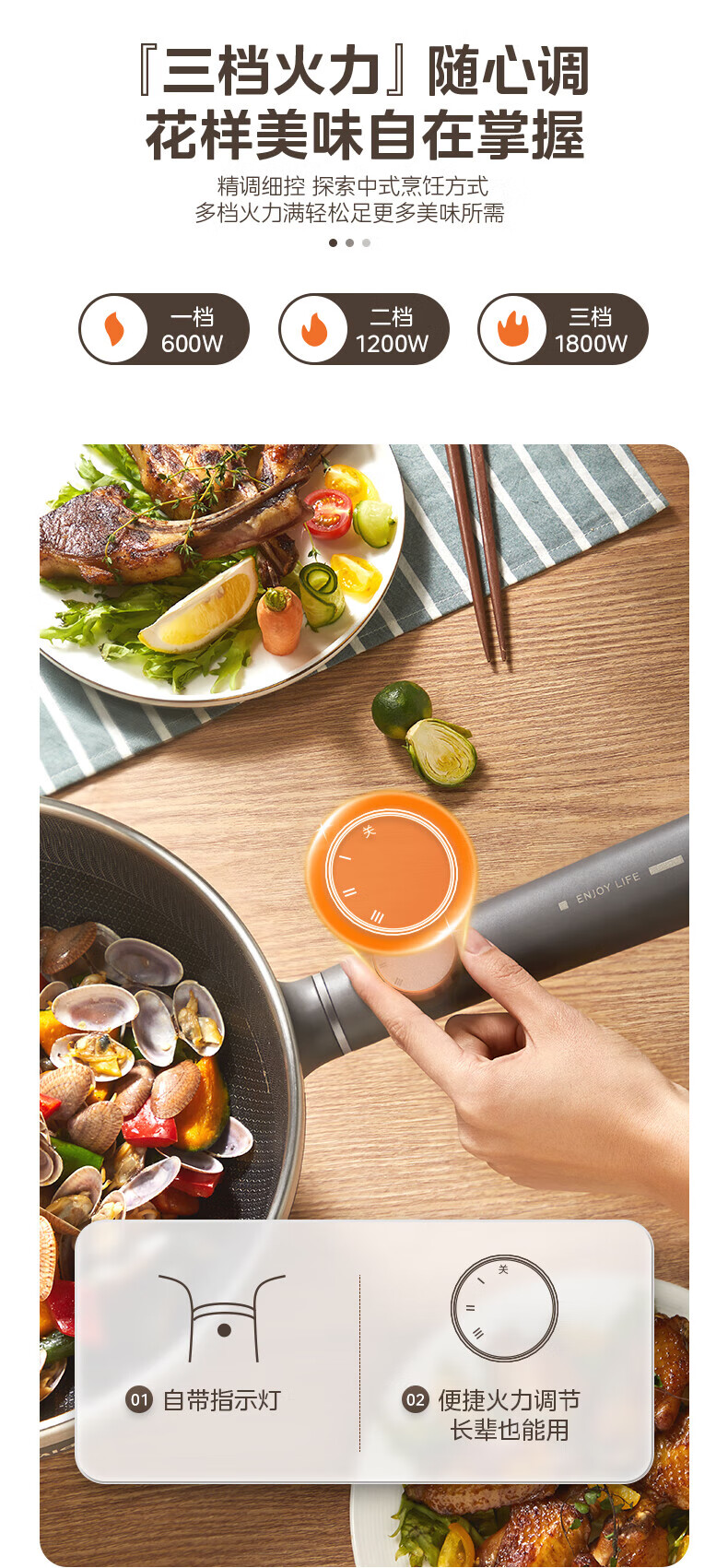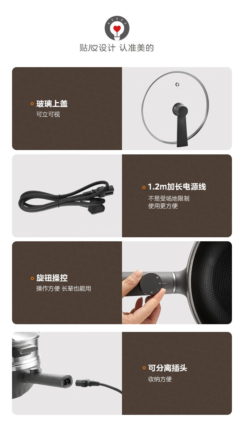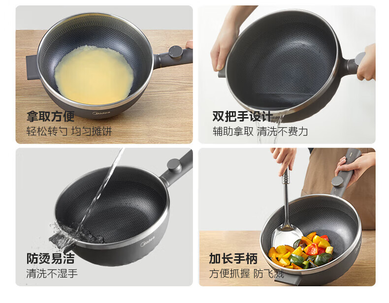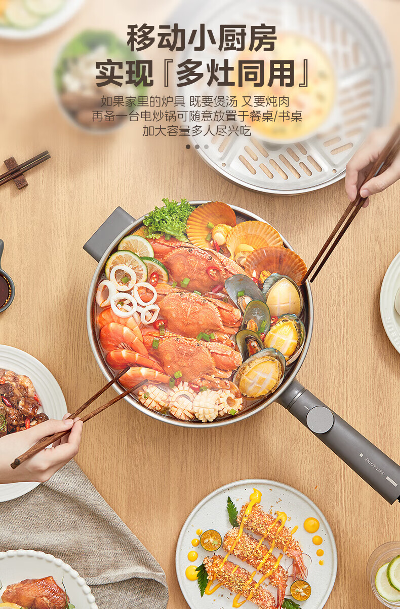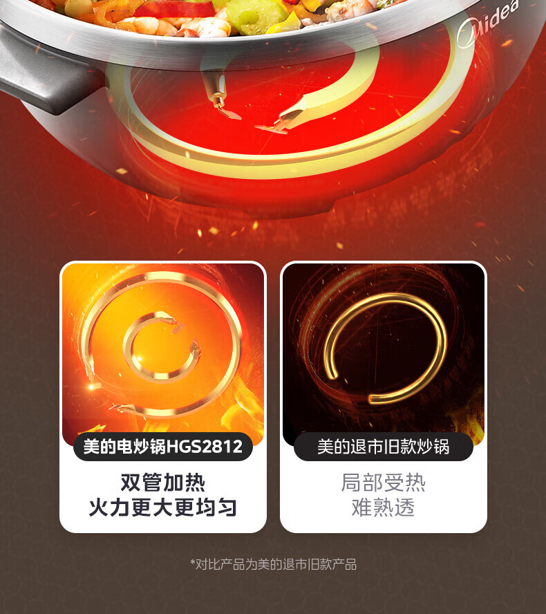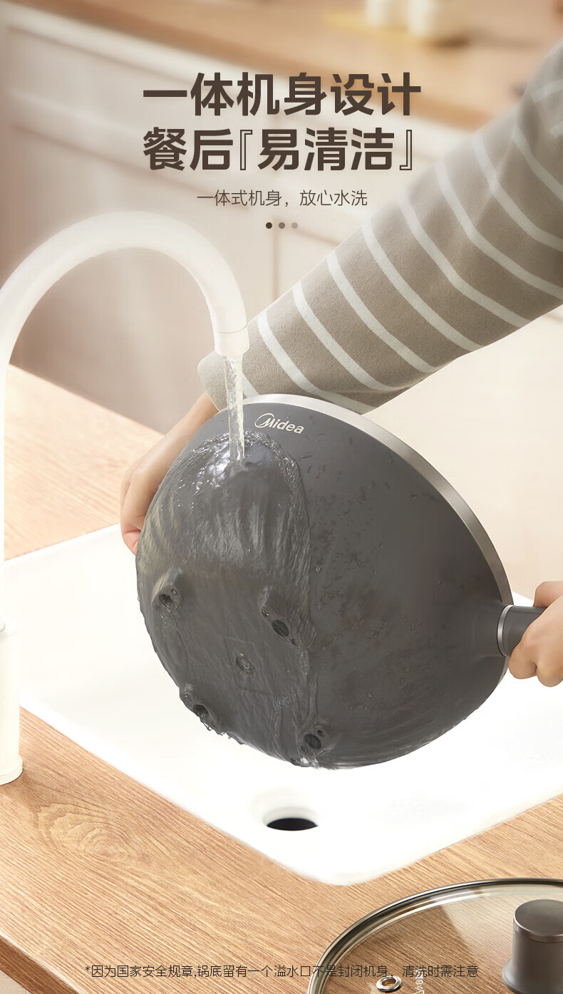 美的(Midea)电炒锅 多用途锅 电蒸锅 电煮锅 电火锅 家用蒸锅多功能锅炒菜锅 蒸煮一体锅 蜂窝晶盾不粘锅 4L MC-HGS2812
