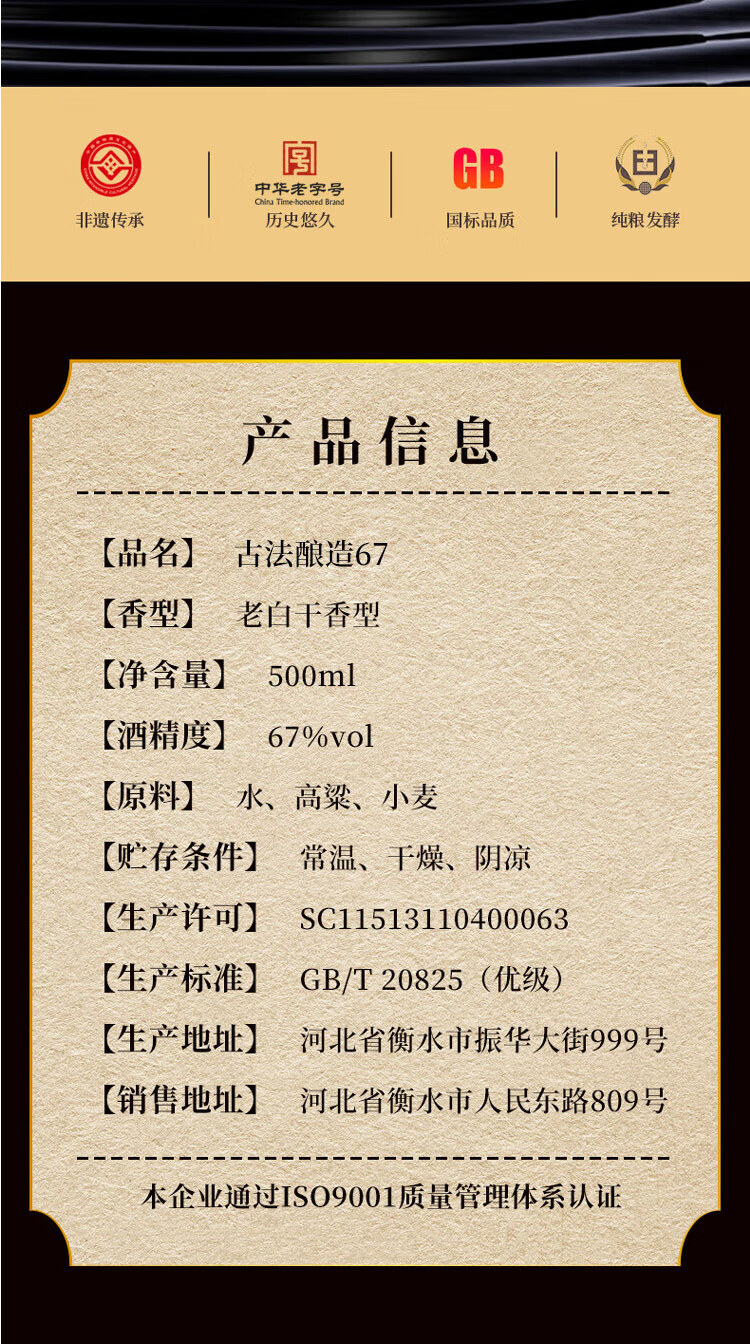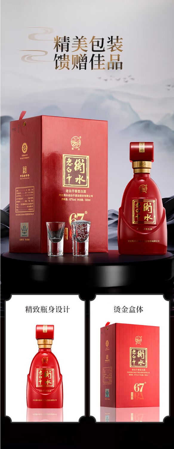 衡水老白干古法酿造中国红 白酒 67度 500ml 单瓶 新老包装随机