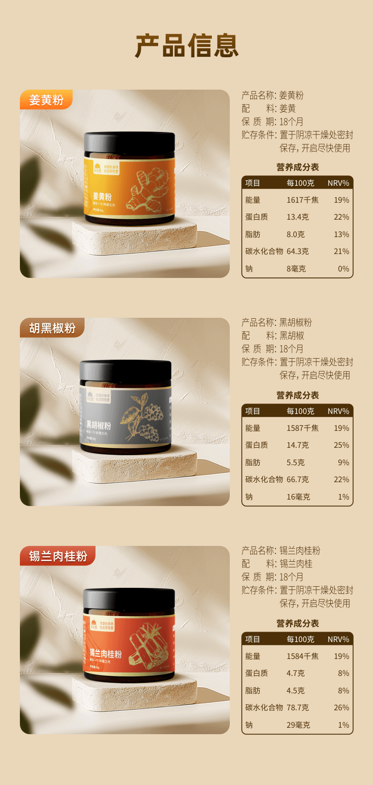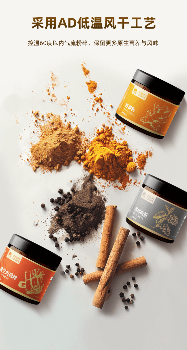 【低温风干工艺】草牧里 姜黄粉、黑胡椒粉、锡兰肉桂粉 45/50g*1罐 每日一勺料理之光