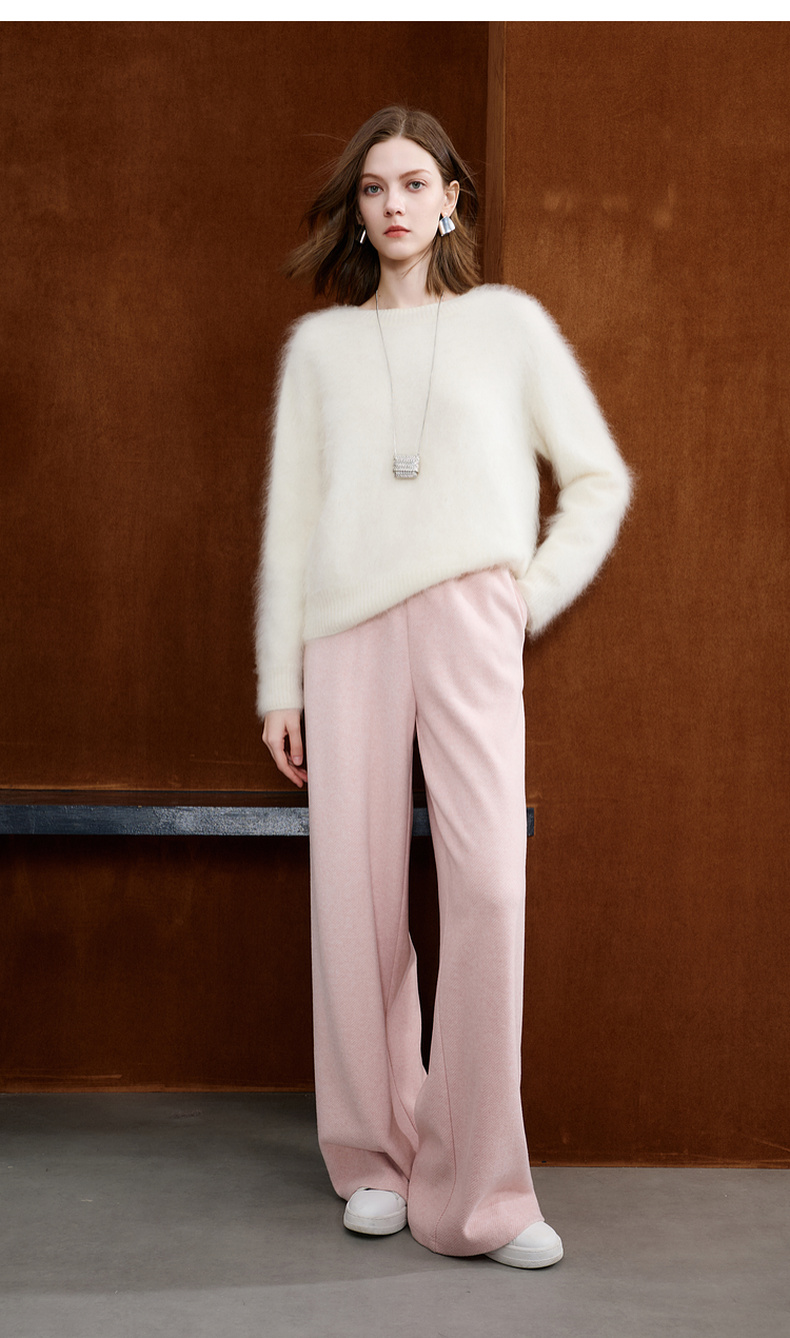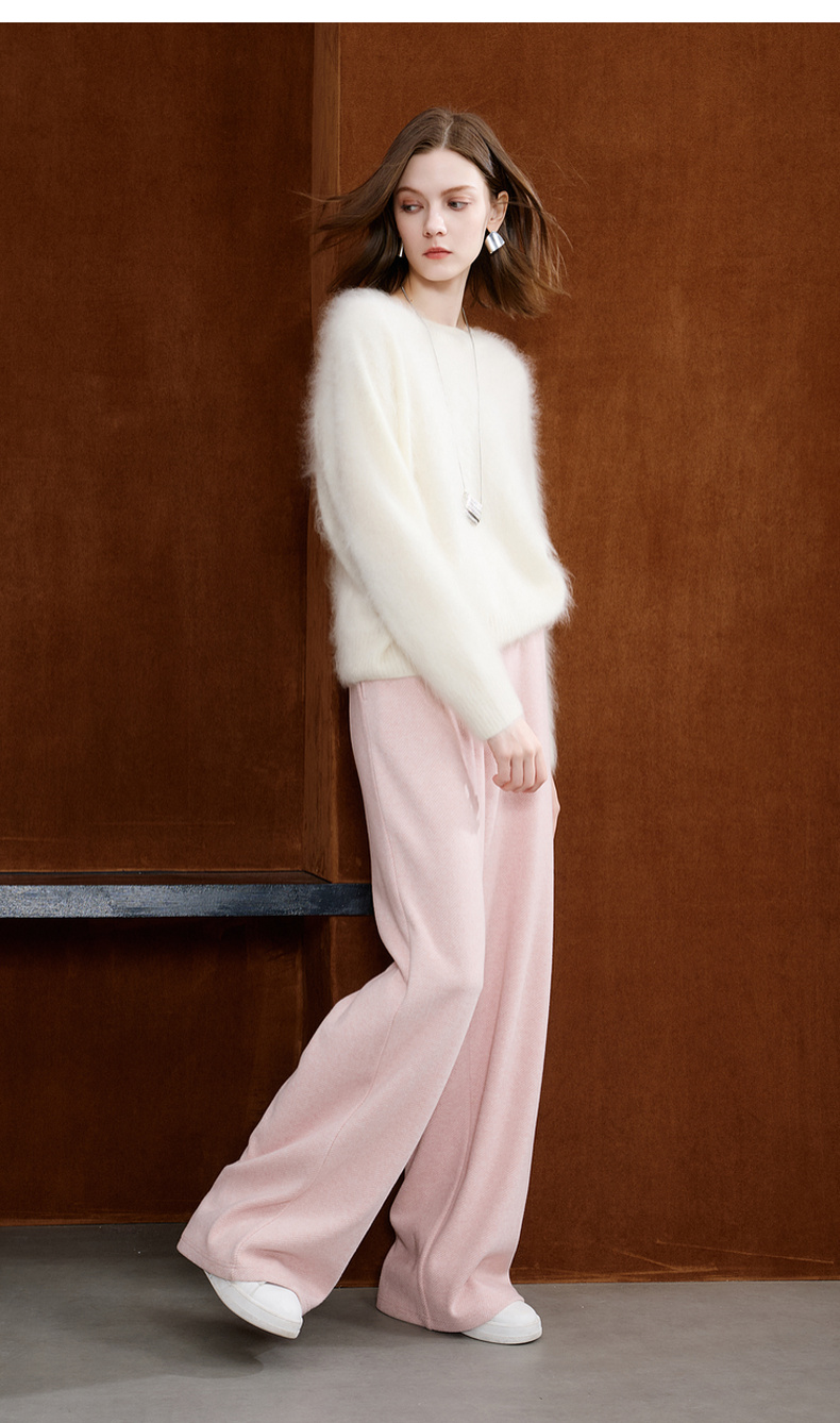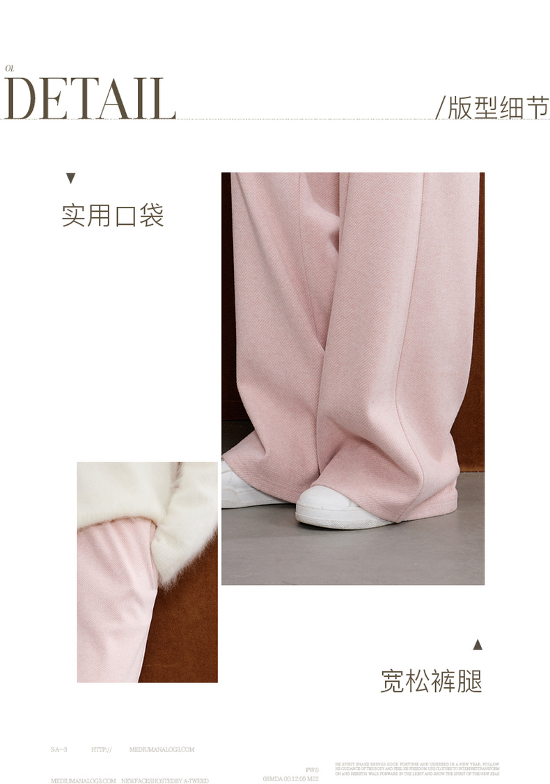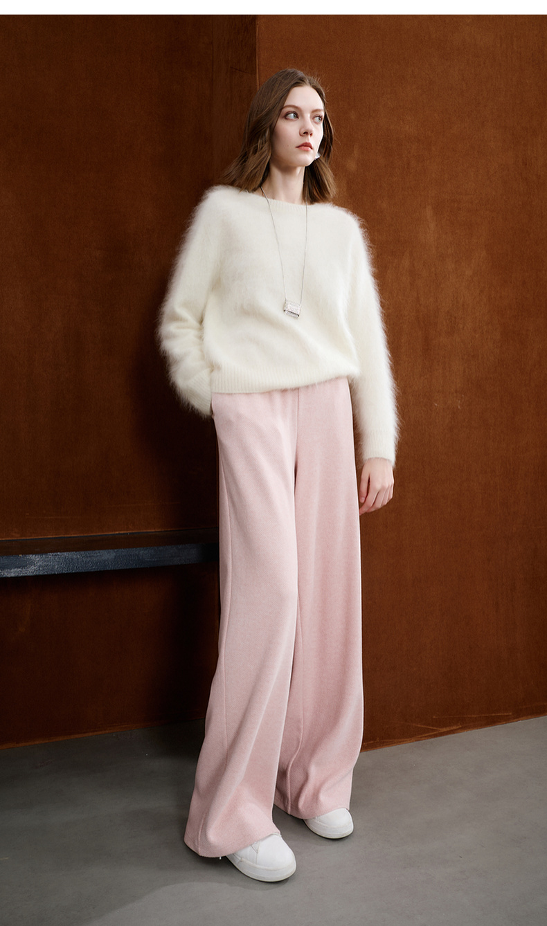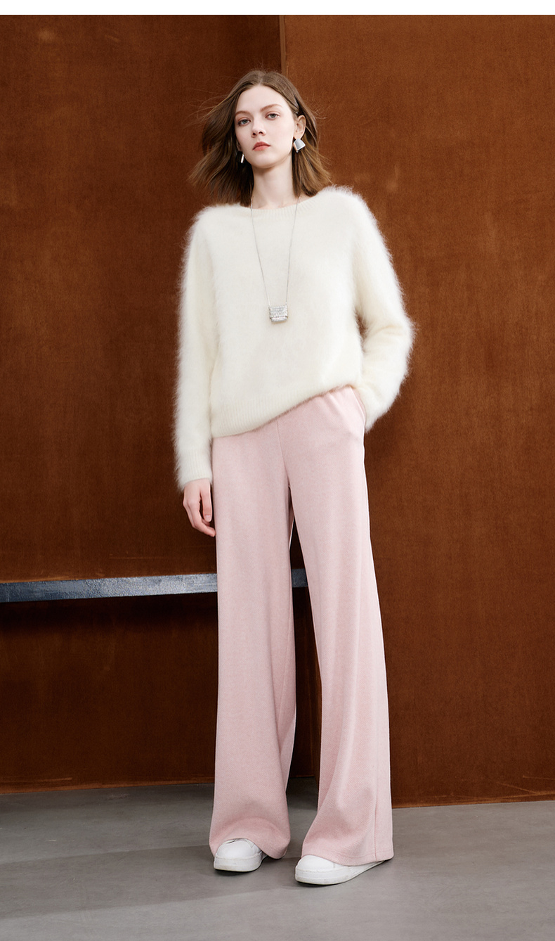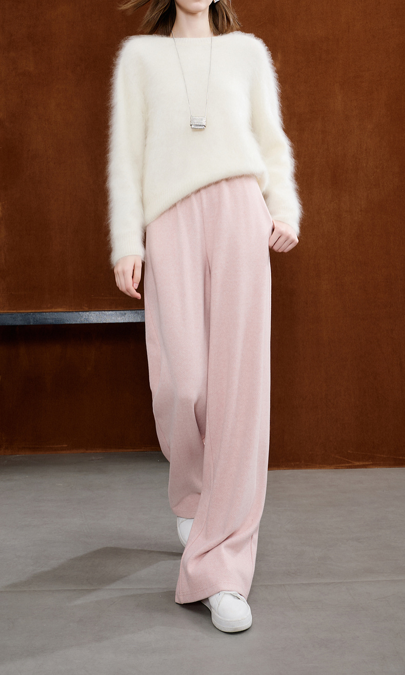 三彩2025冬季新款慵懒休闲长裤松紧高腰阔腿裤宽松垂感显瘦M