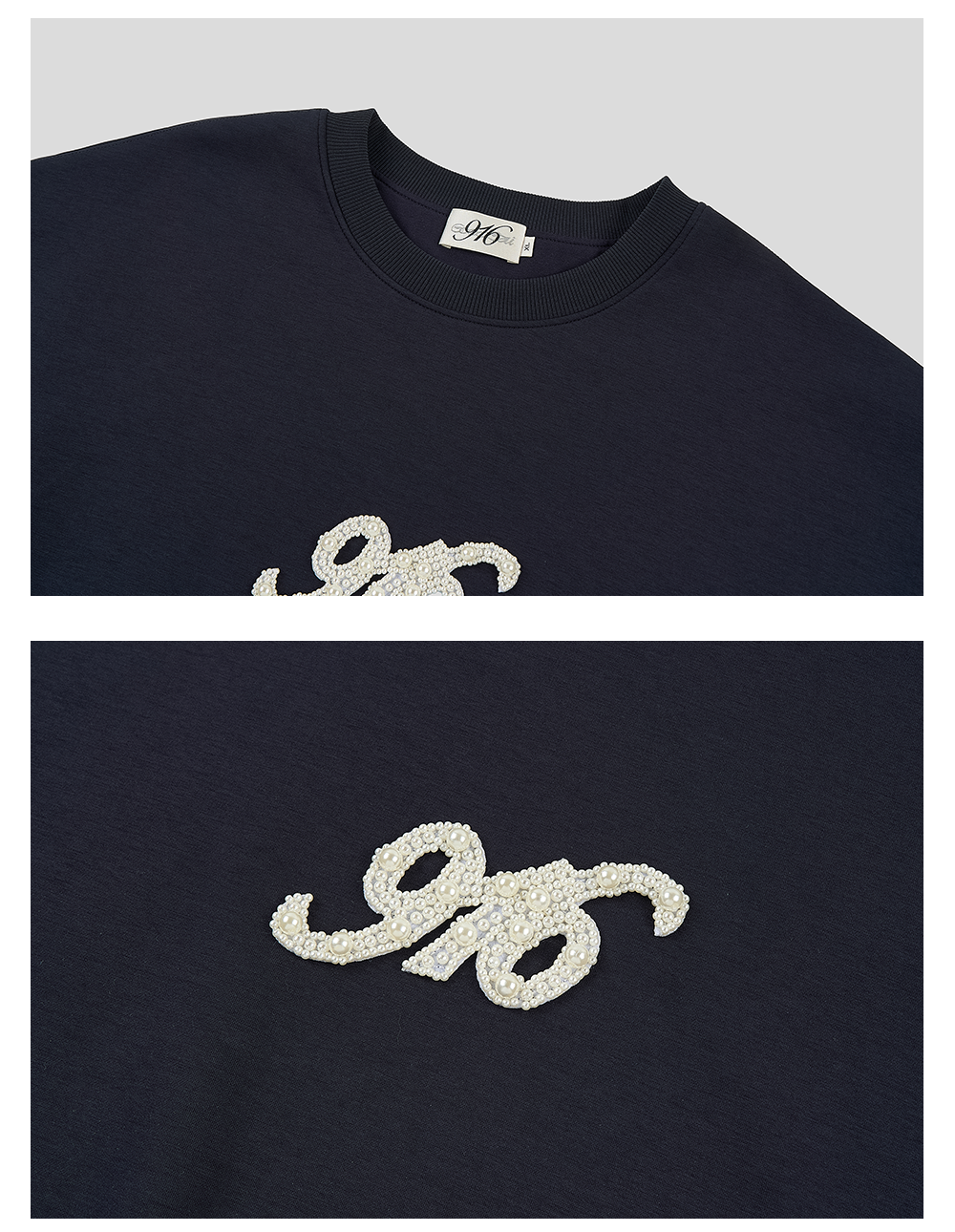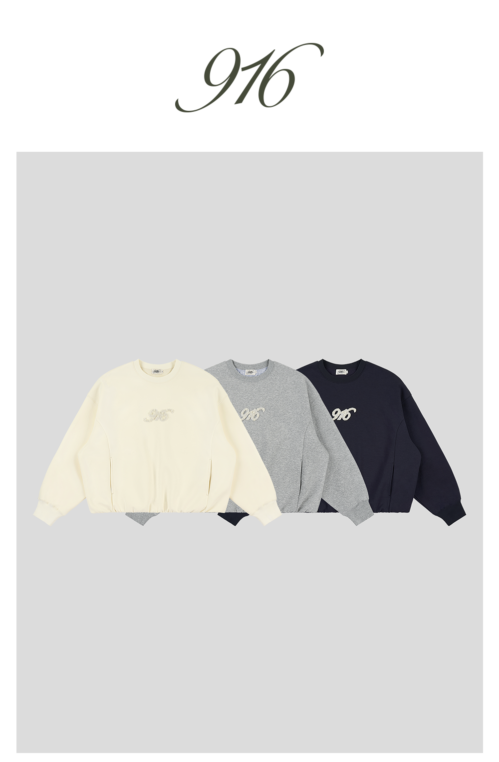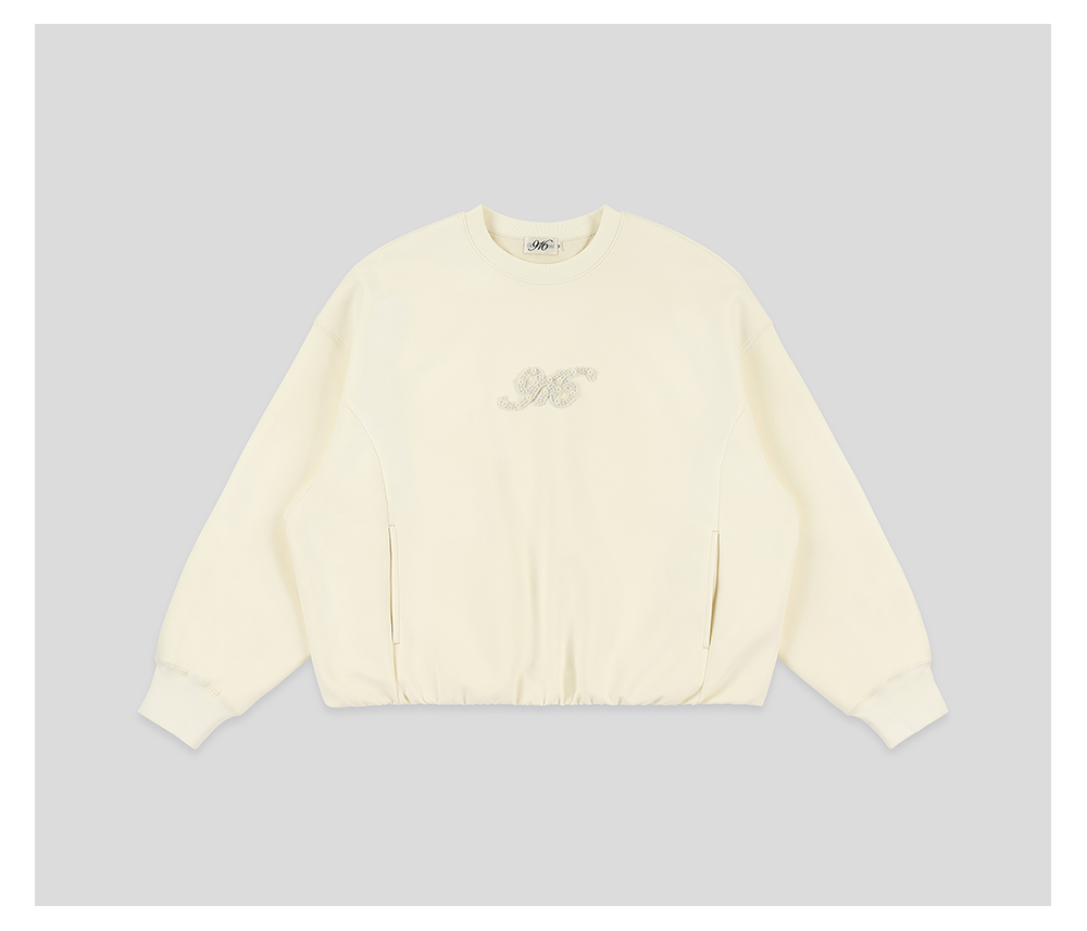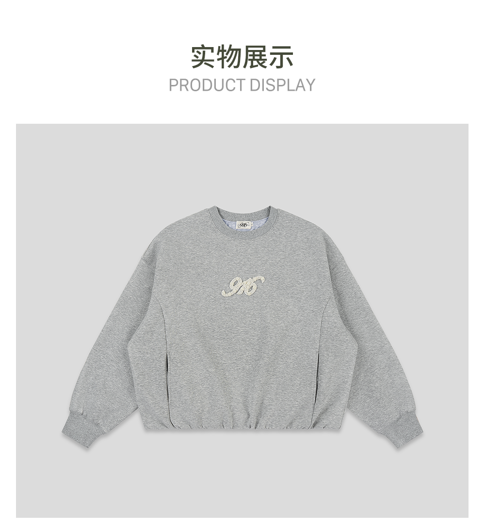 GOODBAI 916 logo仿珍珠绣圆领收腰双层oversize卫衣