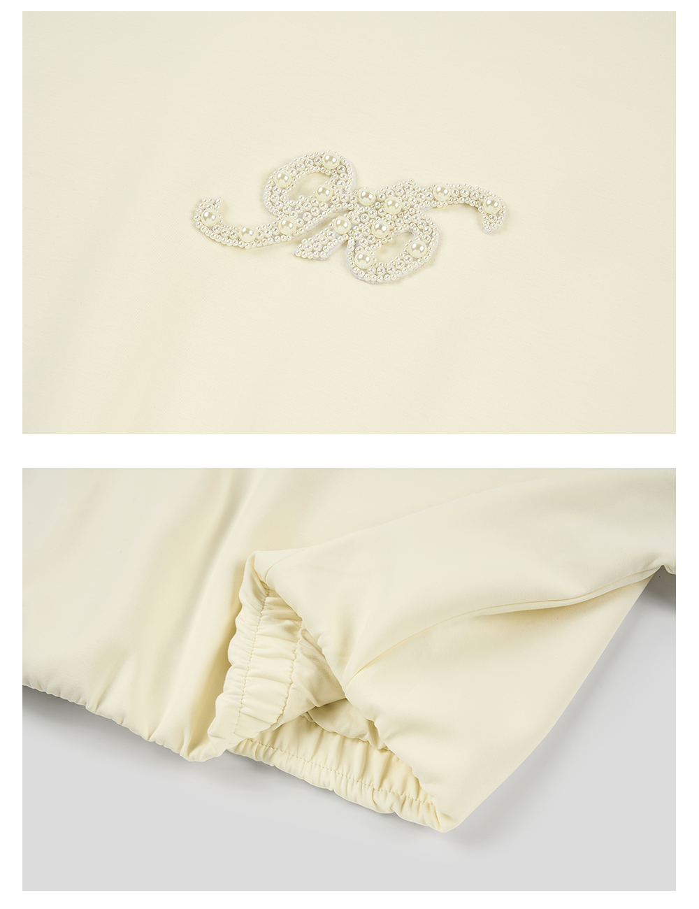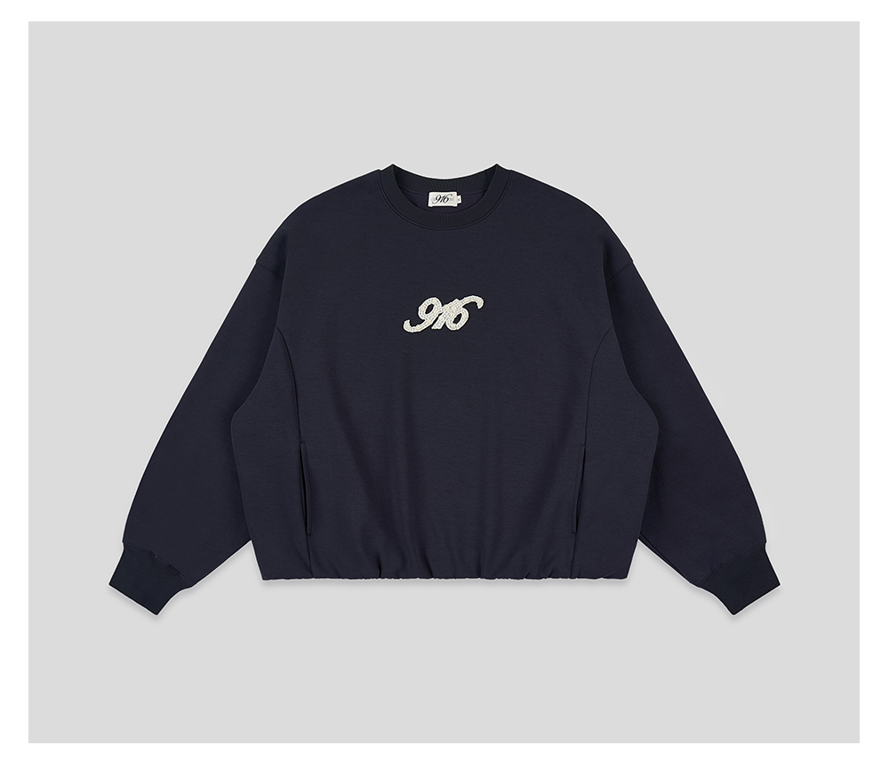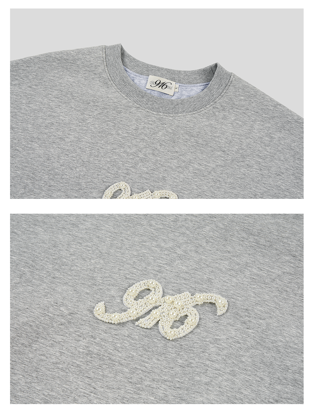 GOODBAI 916 logo仿珍珠绣圆领收腰双层oversize卫衣