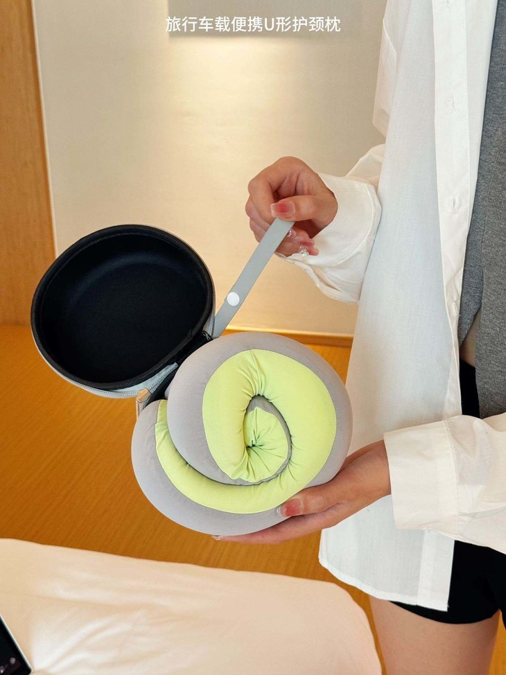 👍赠送收纳盒 收纳后很迷你 自带便携式的收纳盒 旅游出差方便带 只需卷起U形枕 放入盒中拉上拉链即可 收纳好以后可以轻松放入包里 真的太方便了!完全不占空间哦‼️