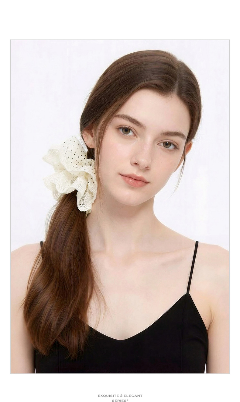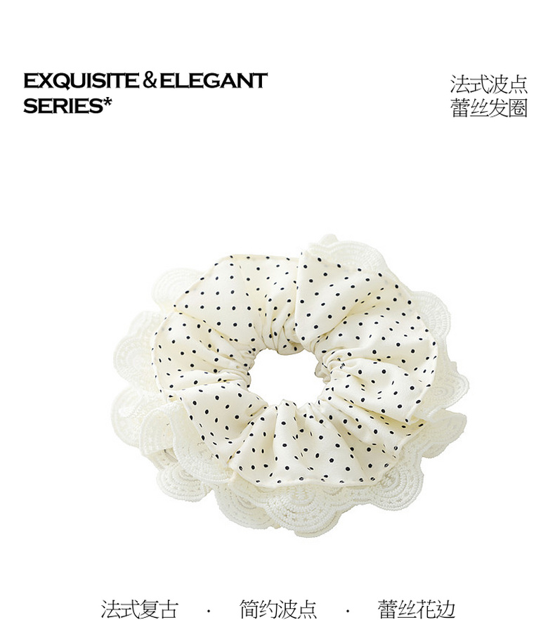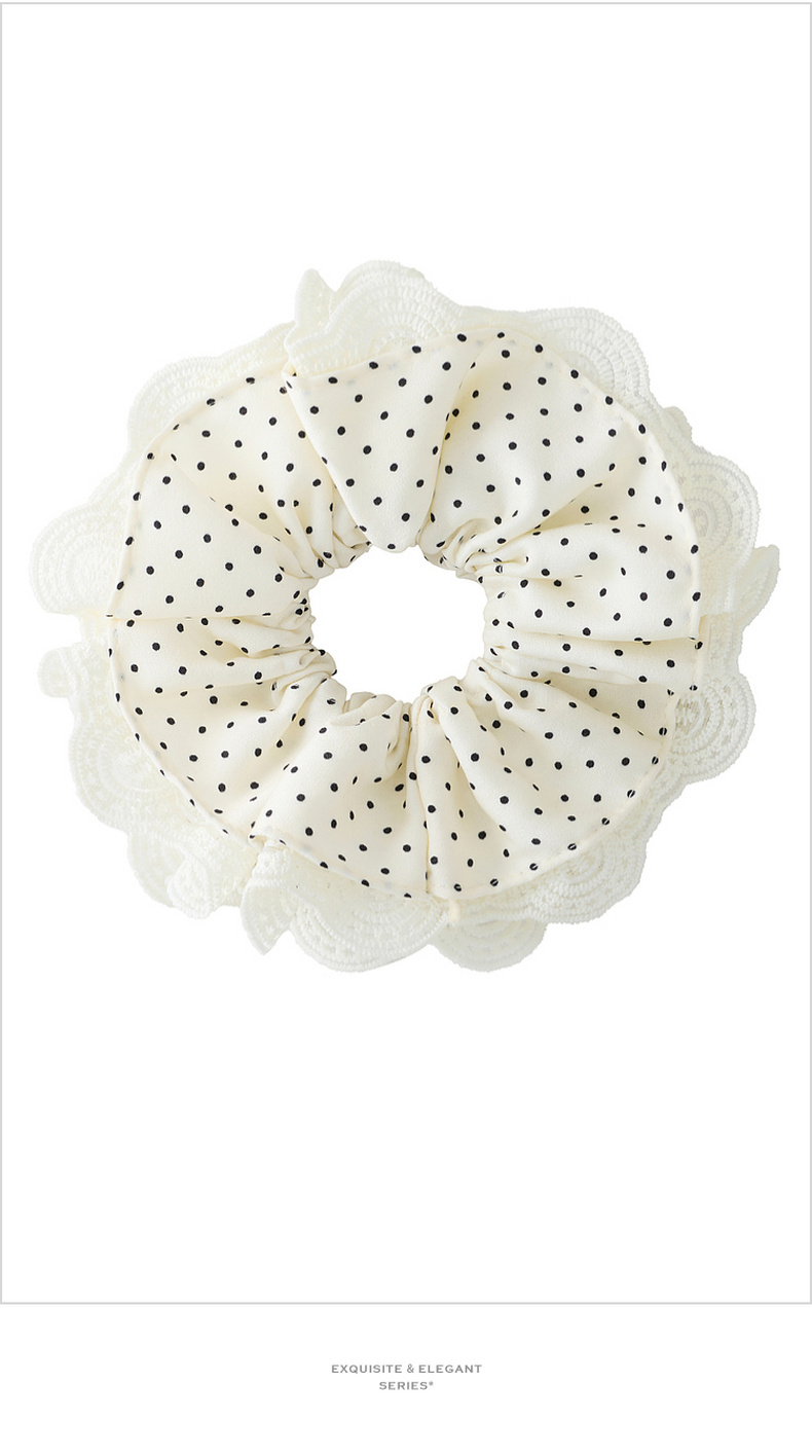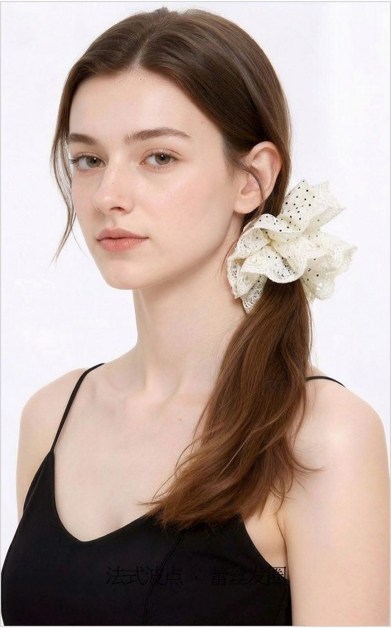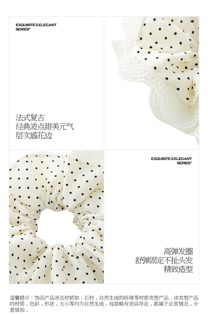 三彩2026新款米白复古波点蕾丝花边发圈高弹法式甜美蓬松氛围感女