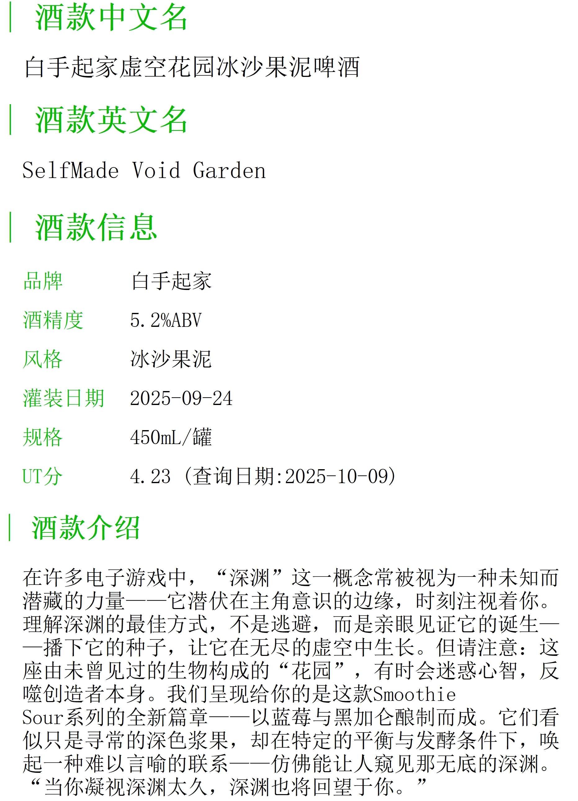 白手起家虚空花园冰沙果泥啤酒