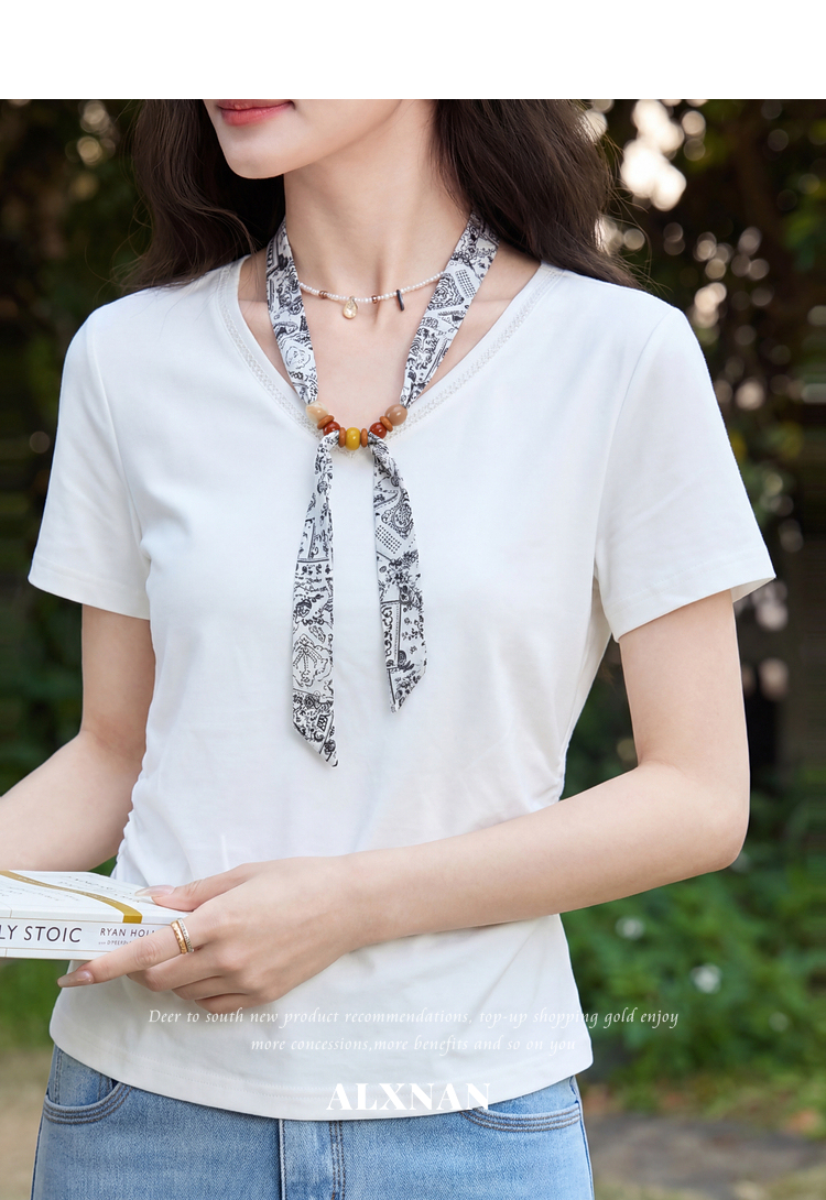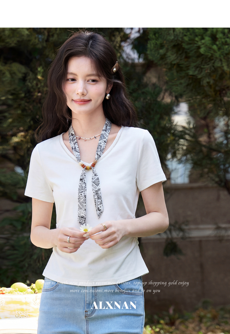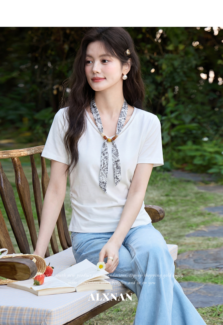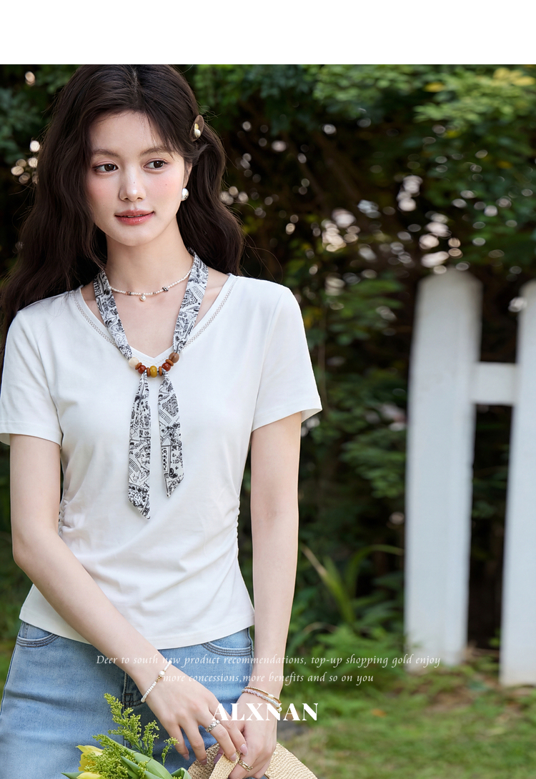 鹿向南【0405/20:00新品前1小时7折限量100件】白色V领短袖T恤