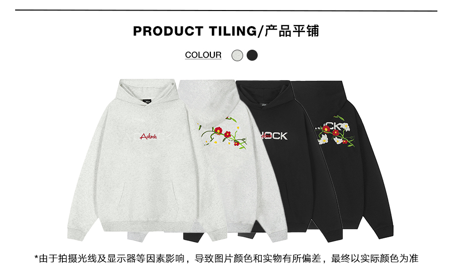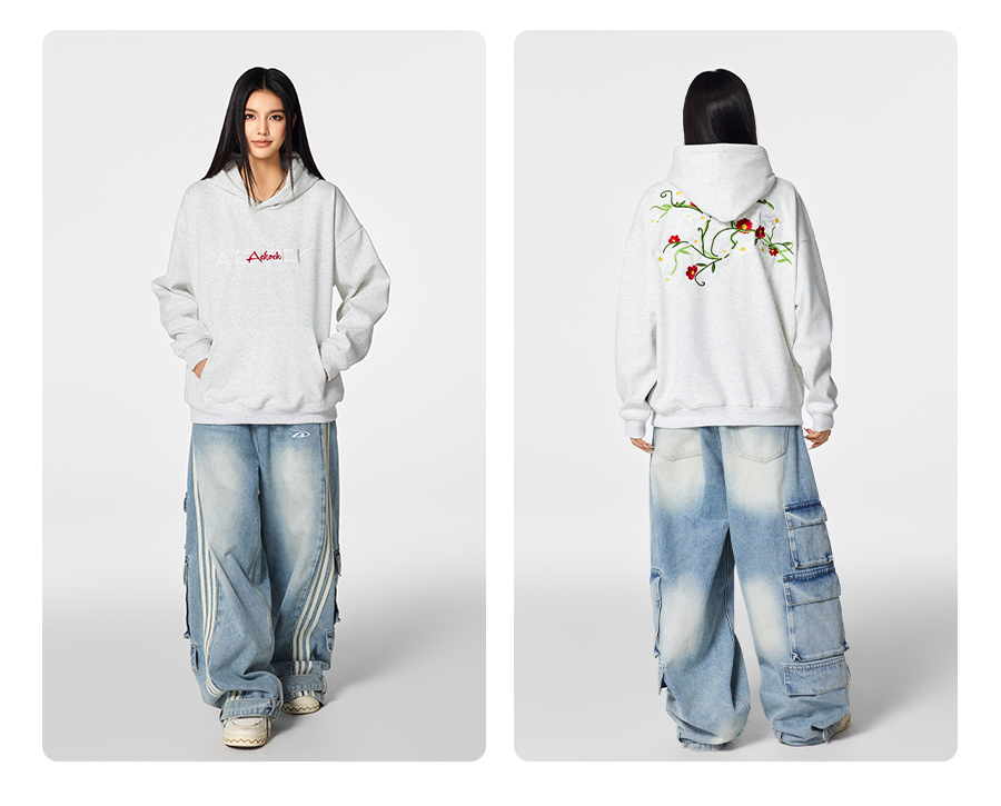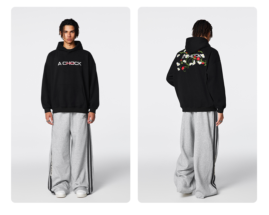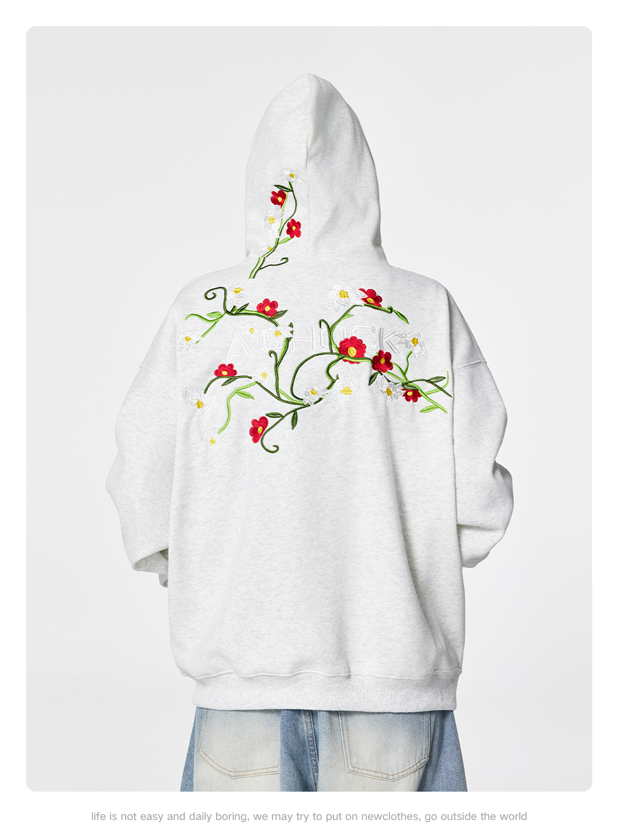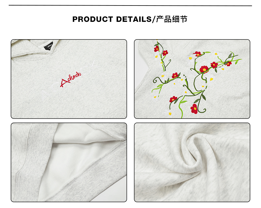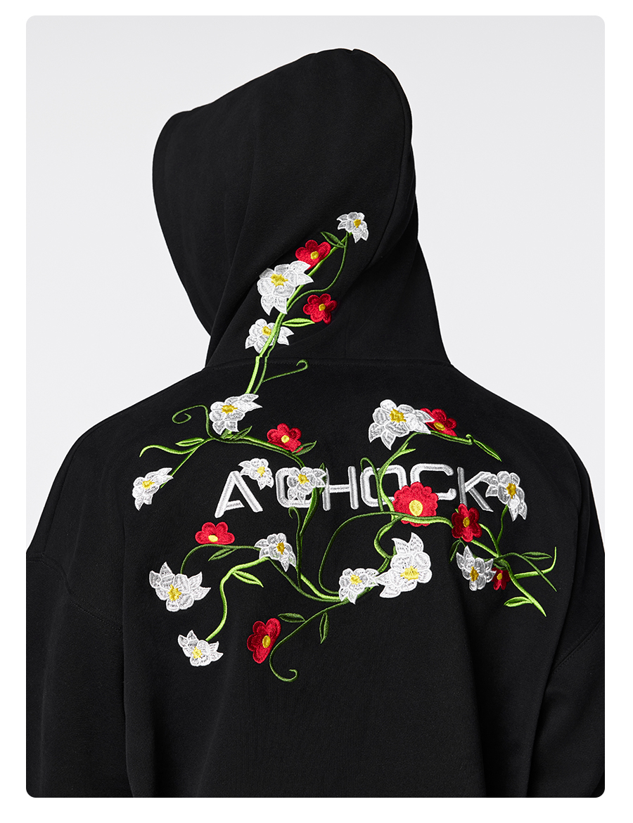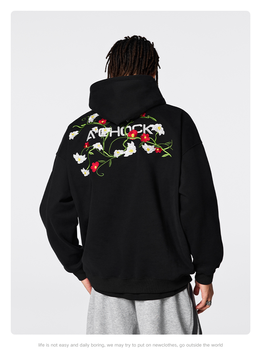 【Achock官方店】潮牌重磅花卉刺绣帽衫外套美式街头宽松连帽卫衣