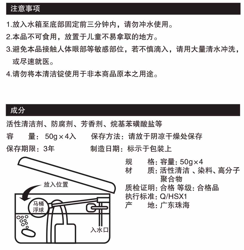 马桶清洁剂 纯蓝泡泡50g*4锭