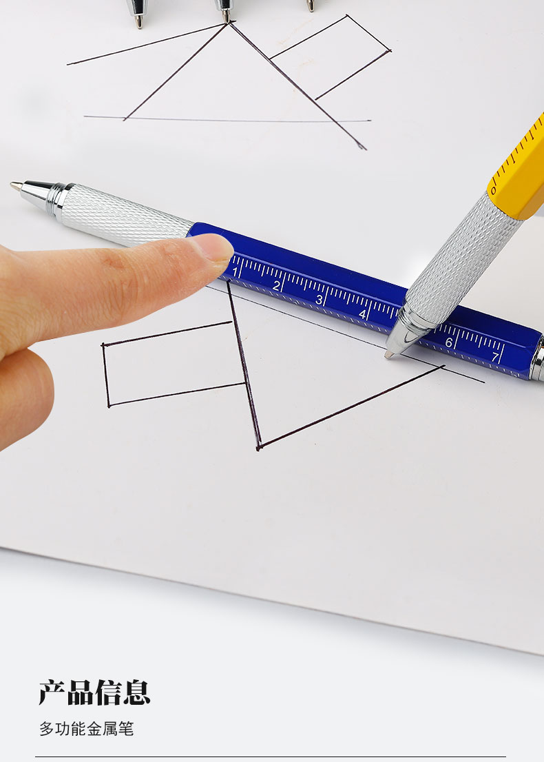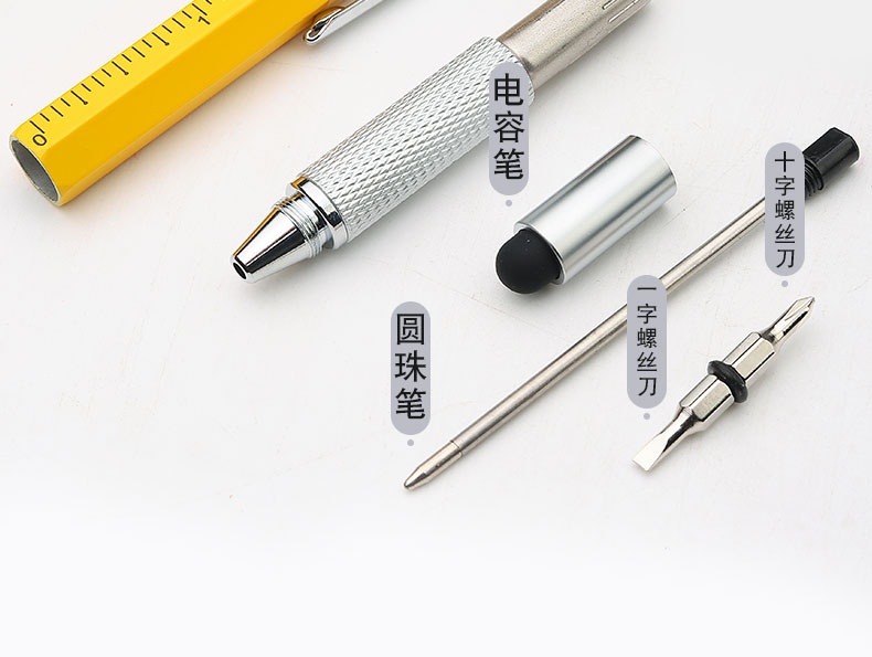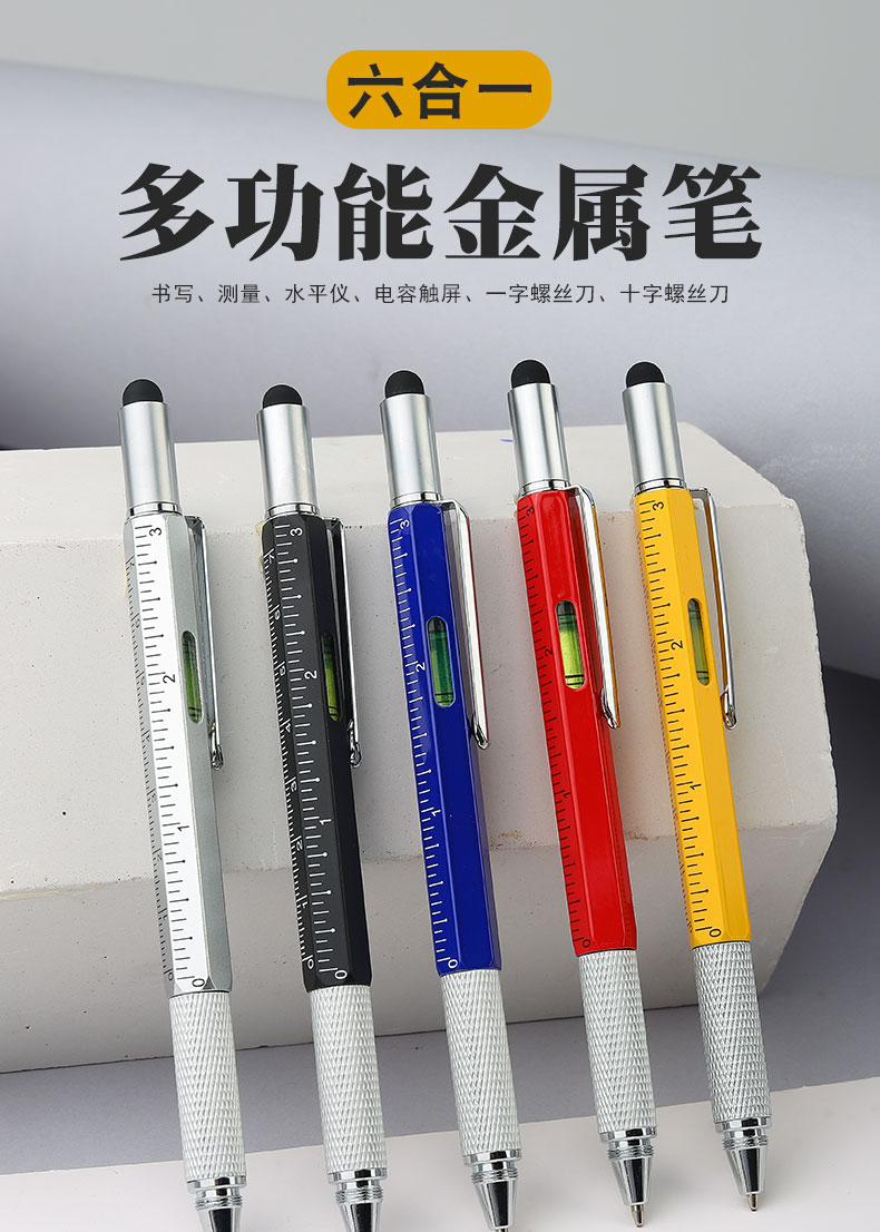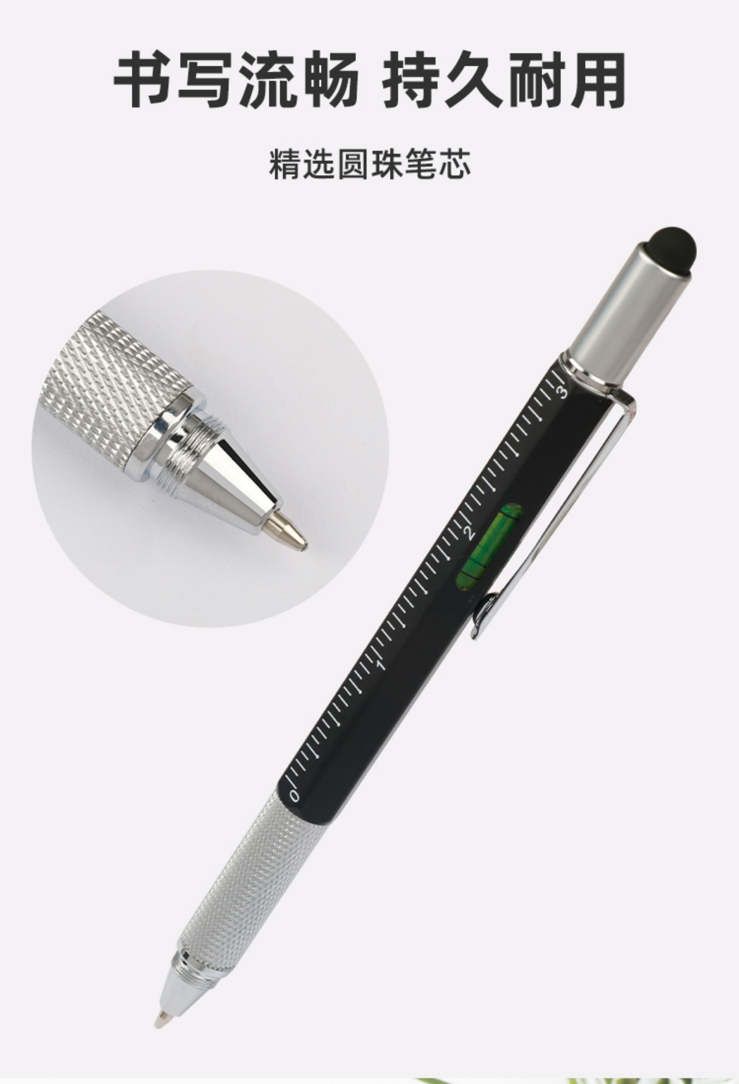 六合一多功能金属笔 圆珠笔带尺子的刻度水平仪电容头触屏笔