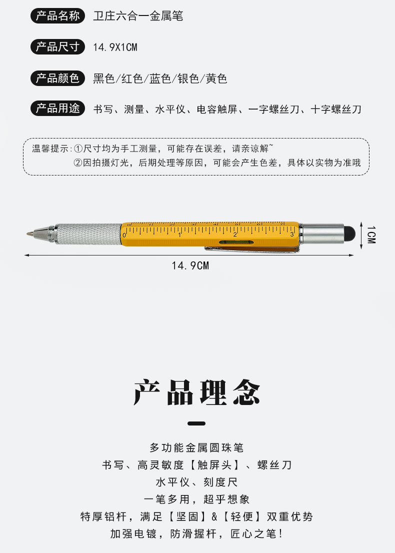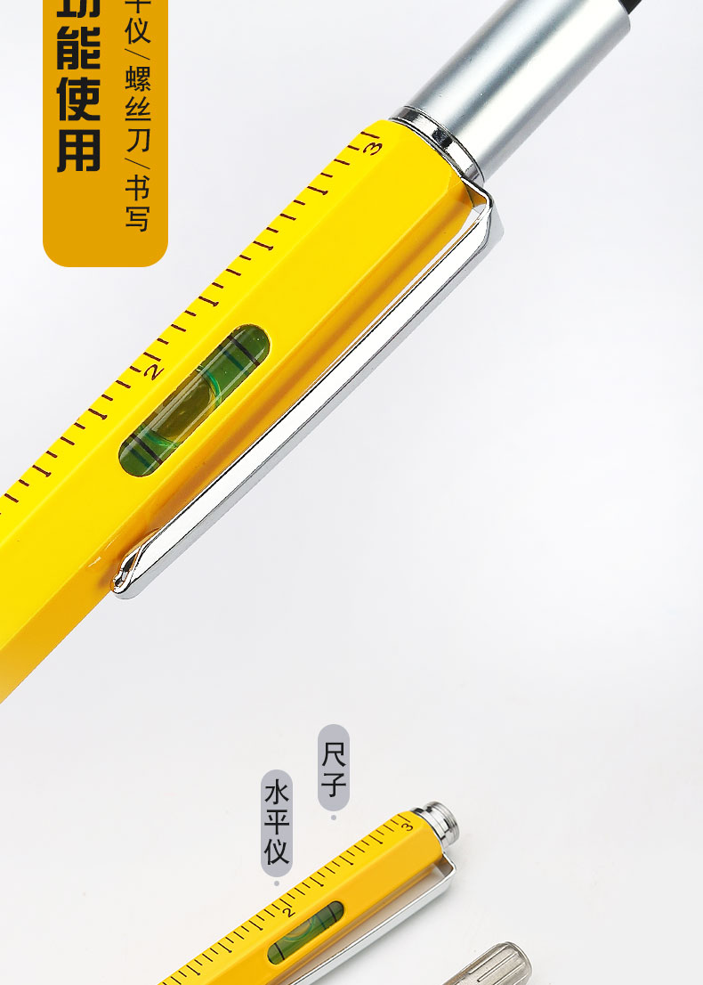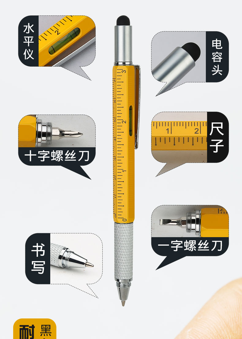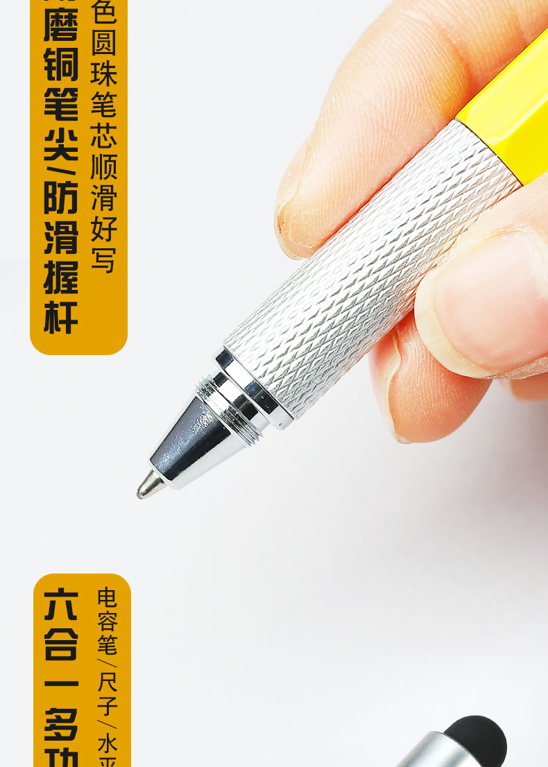 六合一多功能金属笔 圆珠笔带尺子的刻度水平仪电容头触屏笔