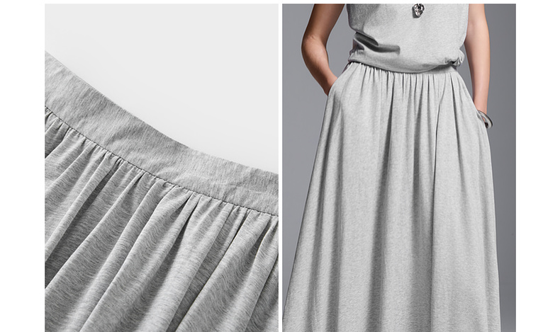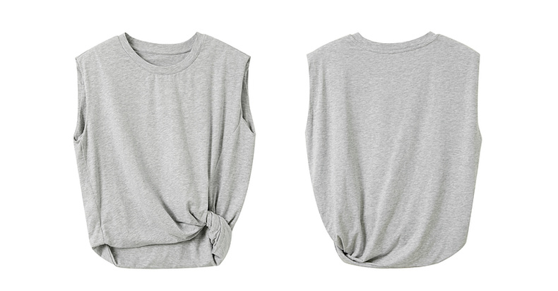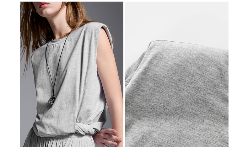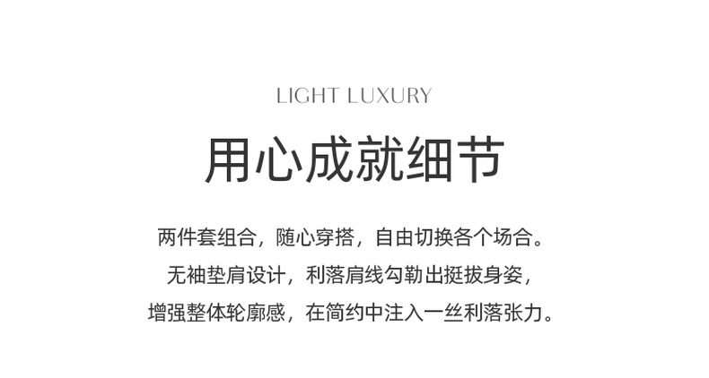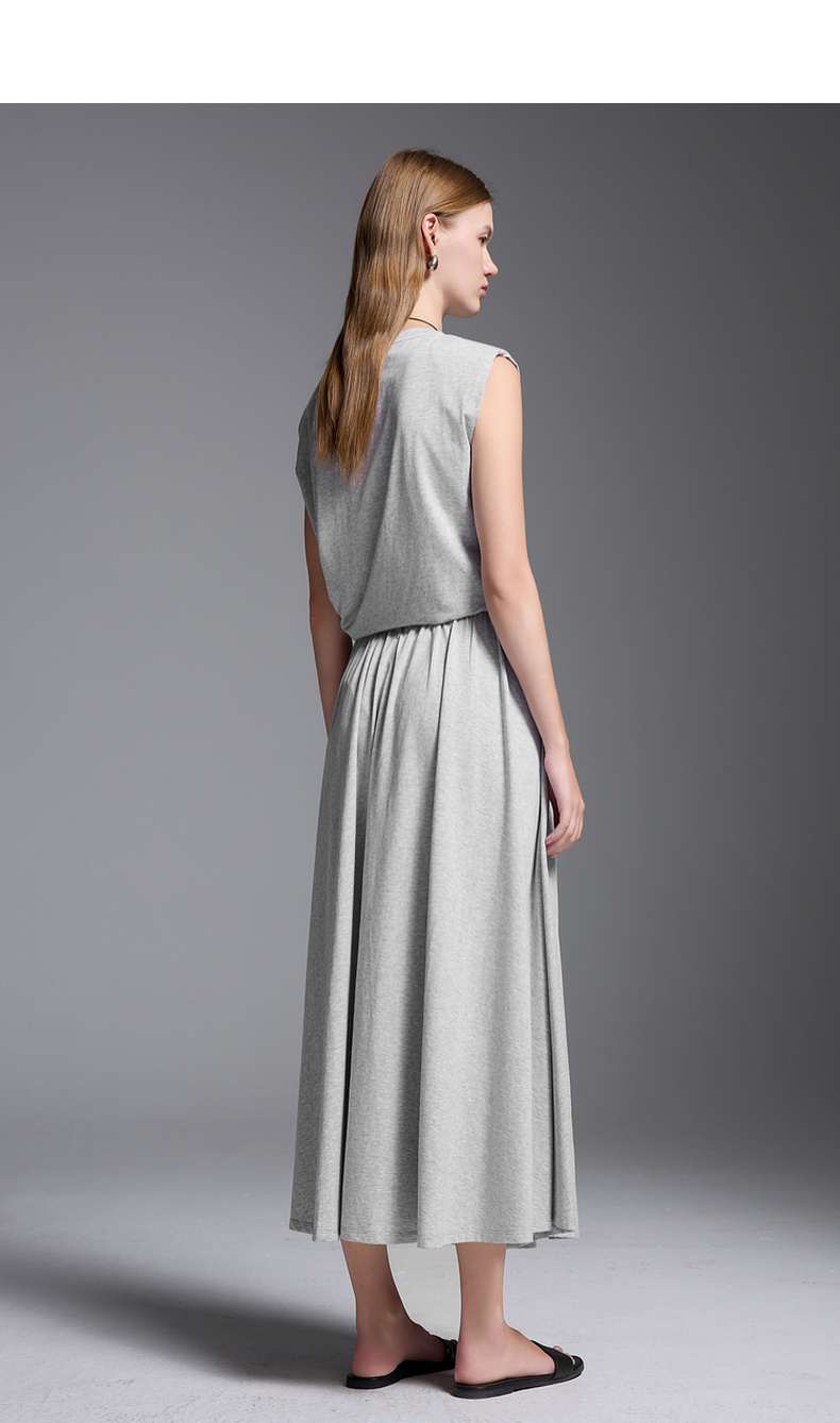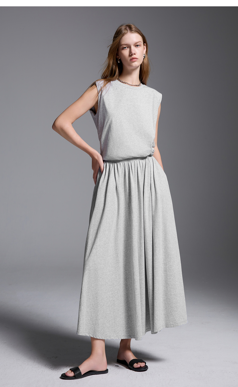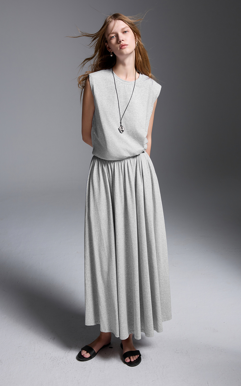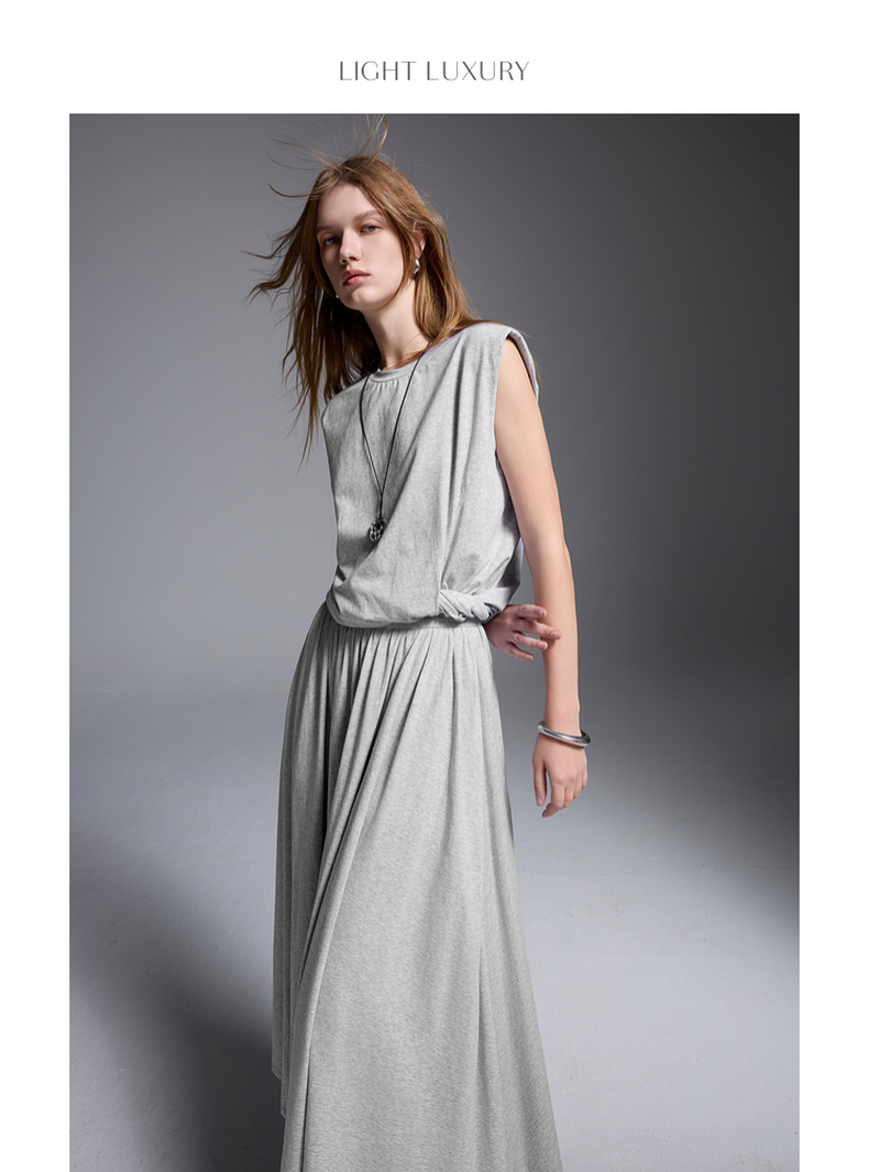三彩2025夏季新款极简风套装圆领无袖垫肩上衣松紧腰半身裙S