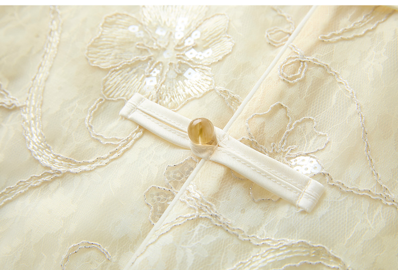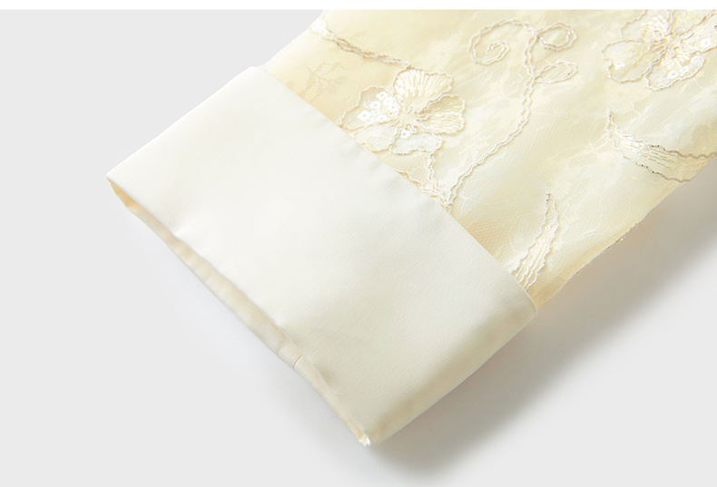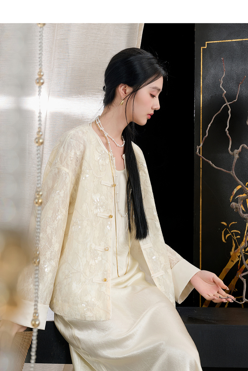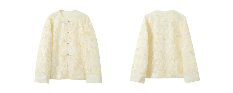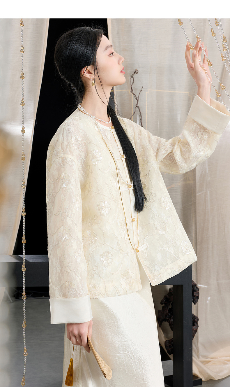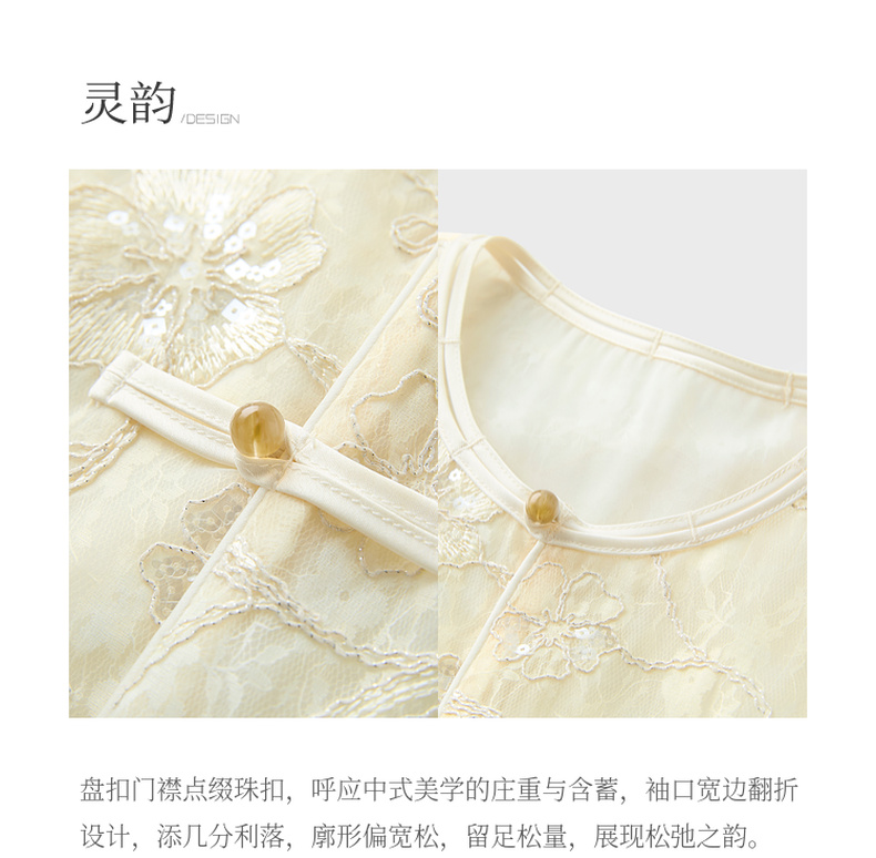 三彩【皎皎玉兰】2025秋季新款欧根纱绣花外套盘扣宽松上衣C