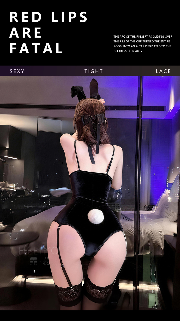 【情趣内衣】霏慕×谜姬 性感开裆兔女郎套装7072