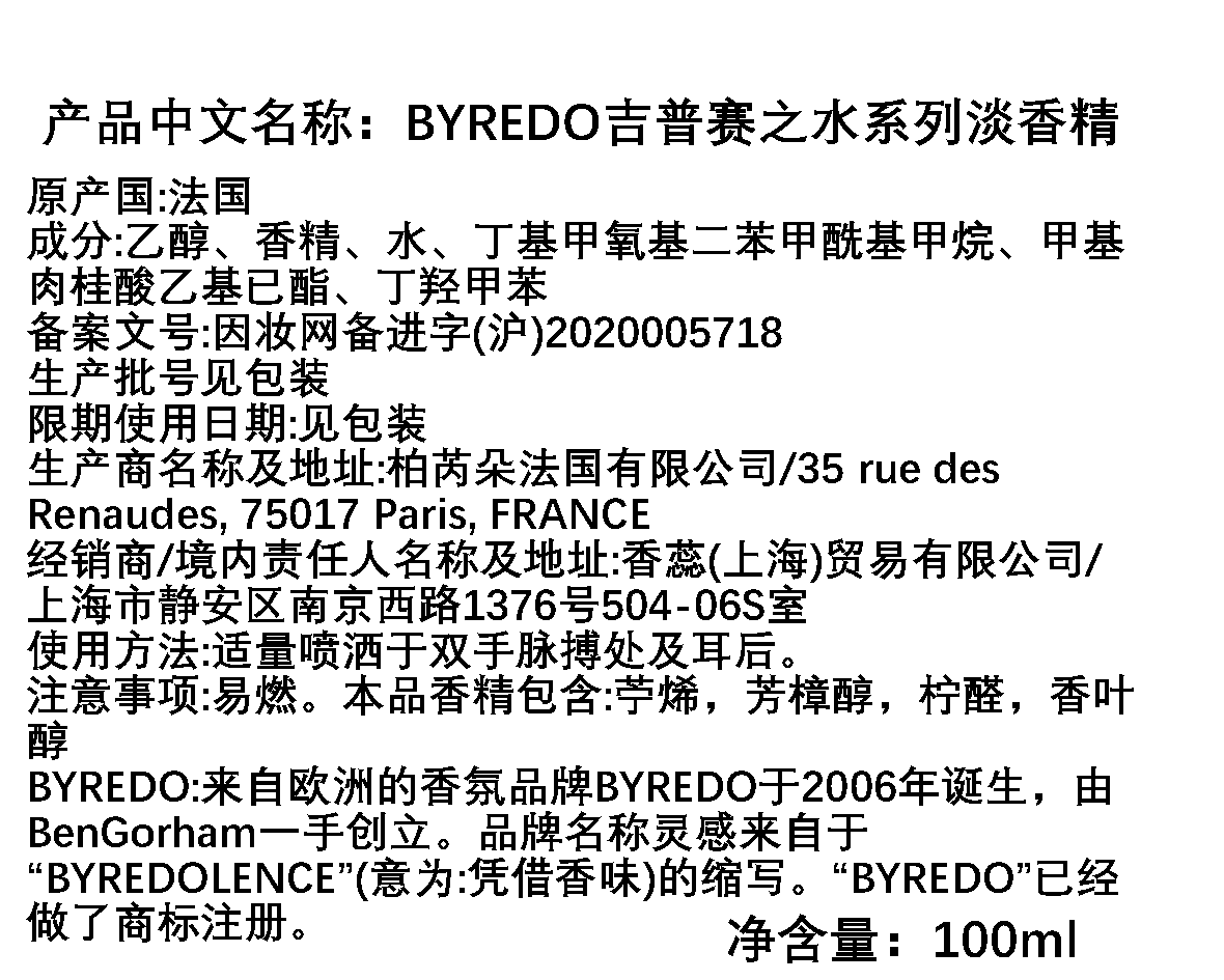 BYREDO百瑞德/柏芮朵 GYPSY WATER/吉普赛之水/流浪者之歌香水