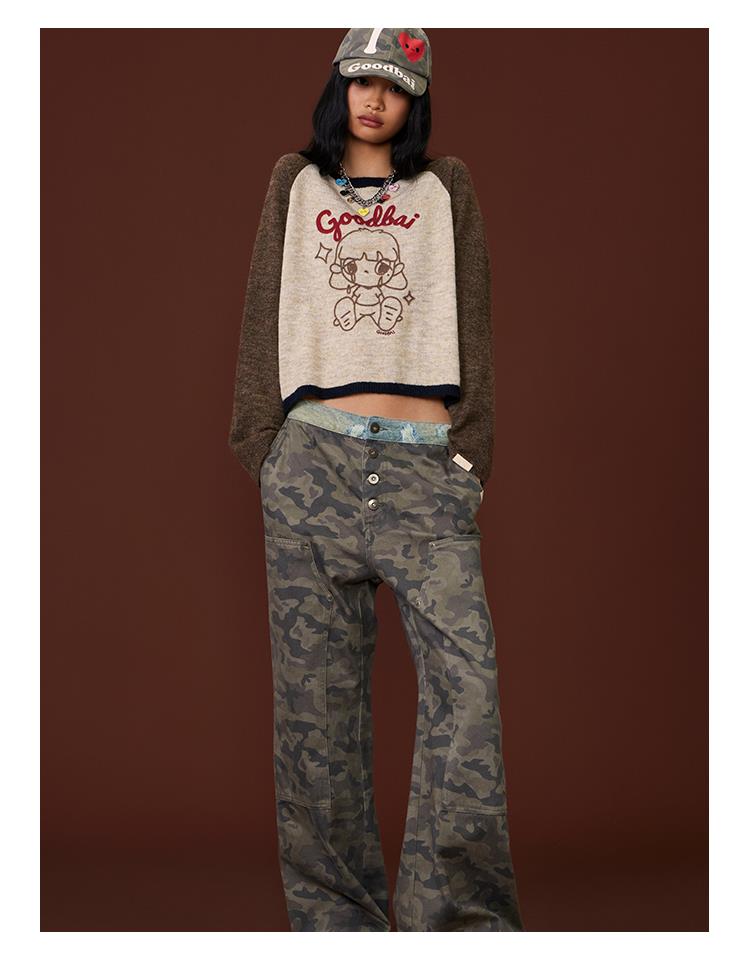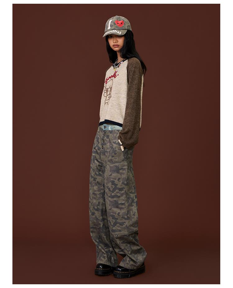 GOODBAI GOODEES迷彩印花水洗高腰休闲裤