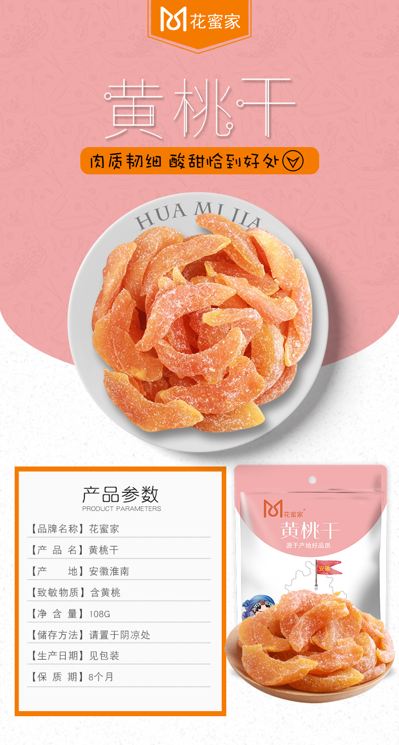花蜜家黄桃干108g/2袋混合装果好多桃子干冻果干泡水喝的蜜饯果脯零食