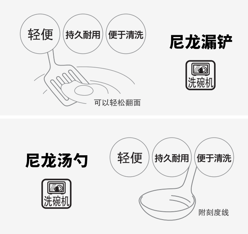 家用厨房炒菜平铲漏铲长柄尼龙汤勺 汤勺