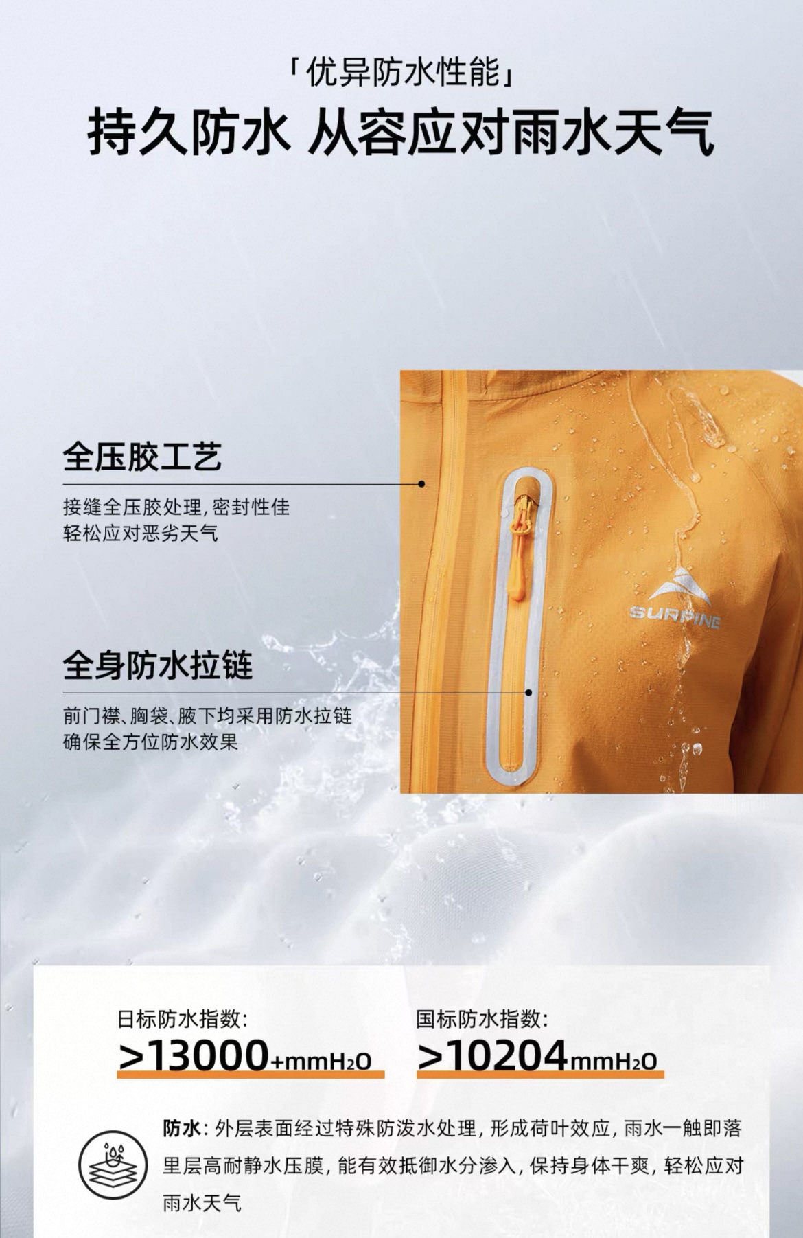 SURPINE松野湃轻量防水耐磨透气登山徒步越野跑彩色冲锋衣外套男女