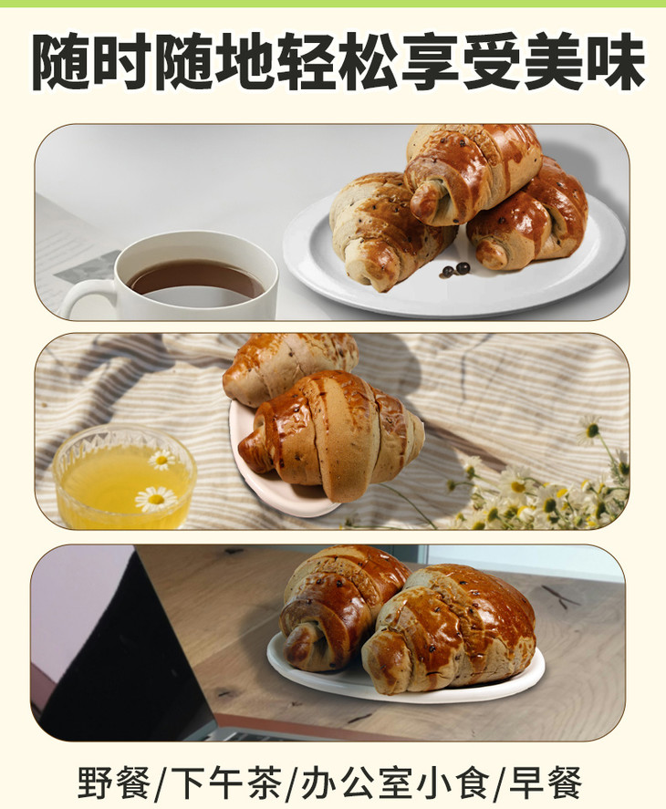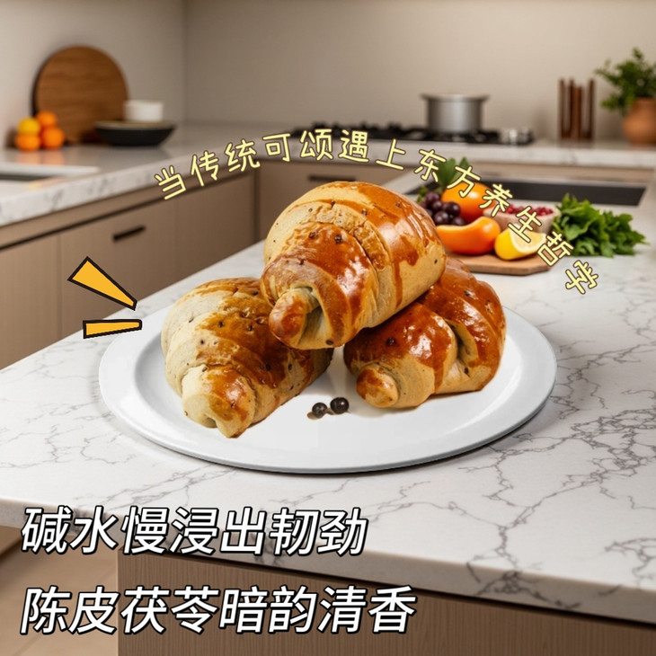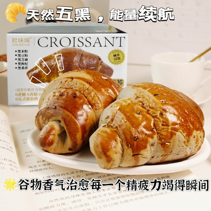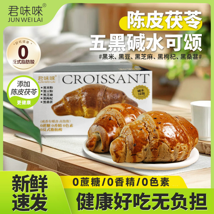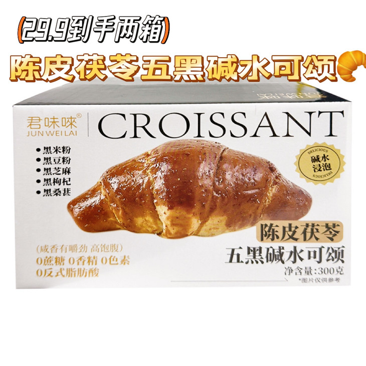 🥐巴黎级工艺+中式祛湿食补💰29.9🉐两箱【君味唻 陈皮茯苓五黑碱水可颂】商超品质!碱水工艺,松软温润,口感层次超丰富😋酥脆邂逅软糯,每口都被谷物香与奶香包围
