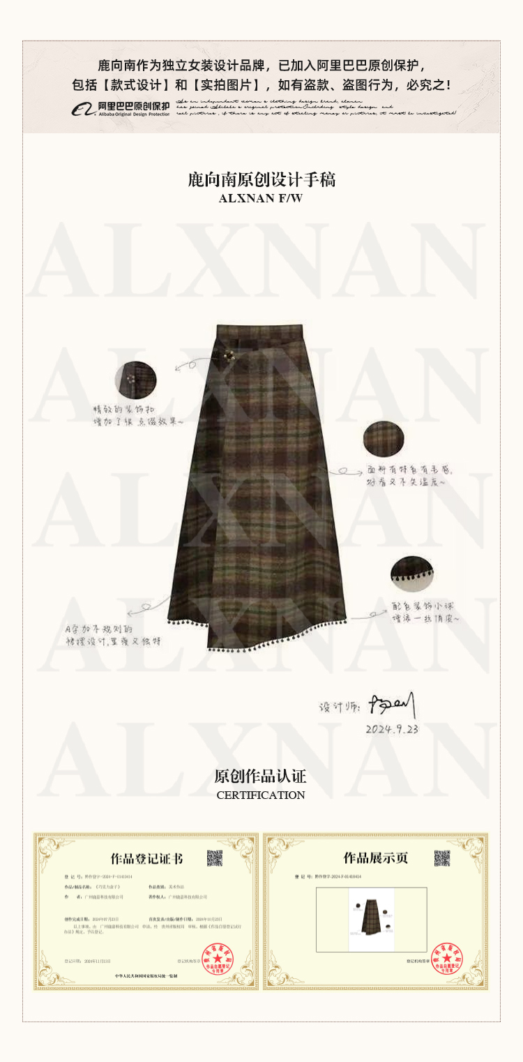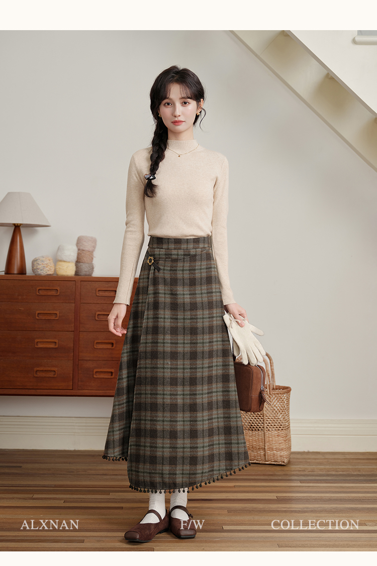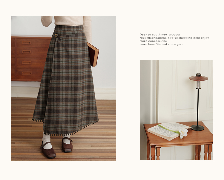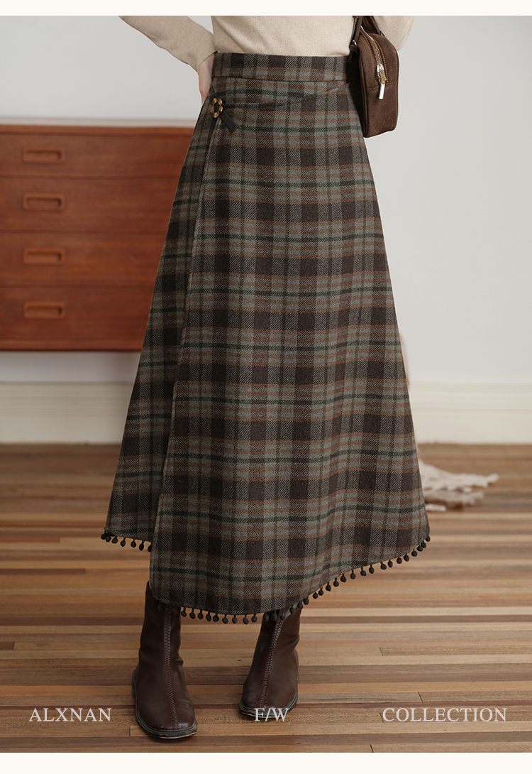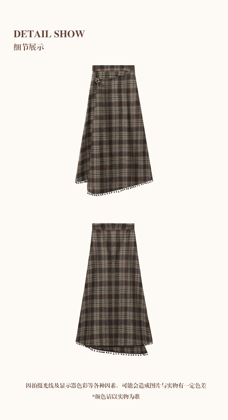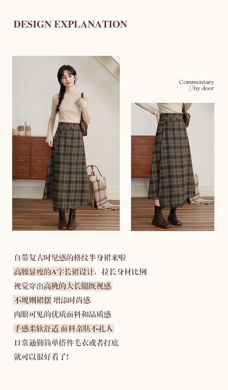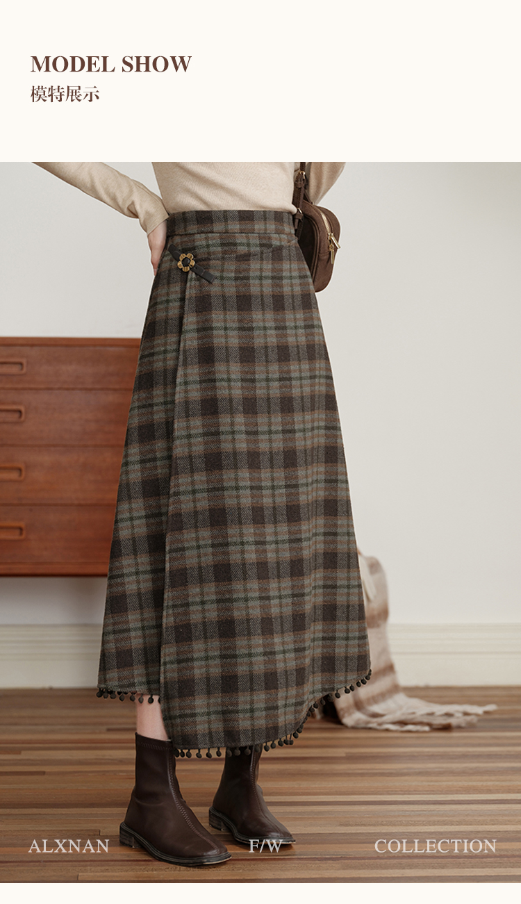 【6折秒杀】鹿向南「巧克力盒子」高腰格子半身裙秋冬款女2025年新款a字裙子L51625