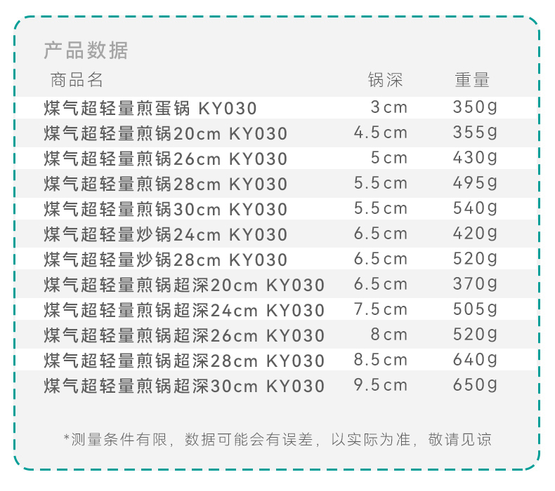 家用厨房锅具煤气超轻量煎蛋锅煎锅炒锅KY030